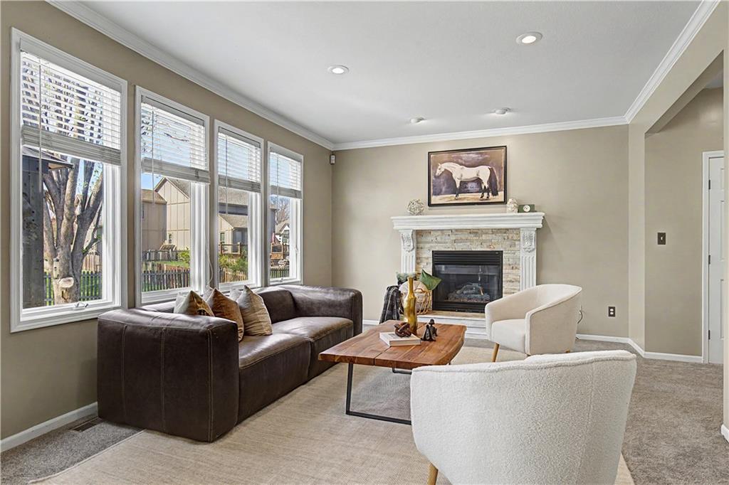 Nestled on a quiet cul-de-sac in the highly sought-after Winterset Park community, this charming two-story home blends warmth, character, and modern comfort. The home offers inviting spaces designed for both everyday living + entertaining. The farmhouse-inspired kitchen is truly the heart of the home, featuring brick accent walls, an oversized island with a stunning custom live-edge wood countertop, + pantry. The warm textures create a space filled w/ vintage charm while maintaining modern functionality. The great room offers a cozy fireplace + large windows that fill the space with natural light. A formal dining room provides the perfect setting for gatherings, while a private main-floor office offers a quiet space for working from home. Convenient laundry, + a charming split staircase add both function + character to the main level. Upstairs, the oversized primary suite offers a relaxing retreat w/ an updated bathroom. The second full bathroom has also been beautifully updated w/ a new double vanity. Three of the bedroom features charming window seats, perfect for a cozy reading nook and newer carpet throughout adds a fresh, comfortable feel. The finished lower level provides a spacious recreation room ideal for movie nights, hobbies, or additional living space. Outside, the covered patio creates an inviting extension of the home, + the level backyard offers plenty of space and endless possibilities for outdoor enjoyment. Surrounded by the natural beauty that makes Winterset so special, residents enjoy resort-style amenities including nature trails, a community pool, tennis courts, play area, clubhouse, + community center. Located just minutes from highways, shopping, dining, + Longview Lake, this home offers the perfect balance of convenience, community, + charm in one of Lee’s Summit’s most desirable neighborhoods. 704 SW Trailpark Court….no place like home!