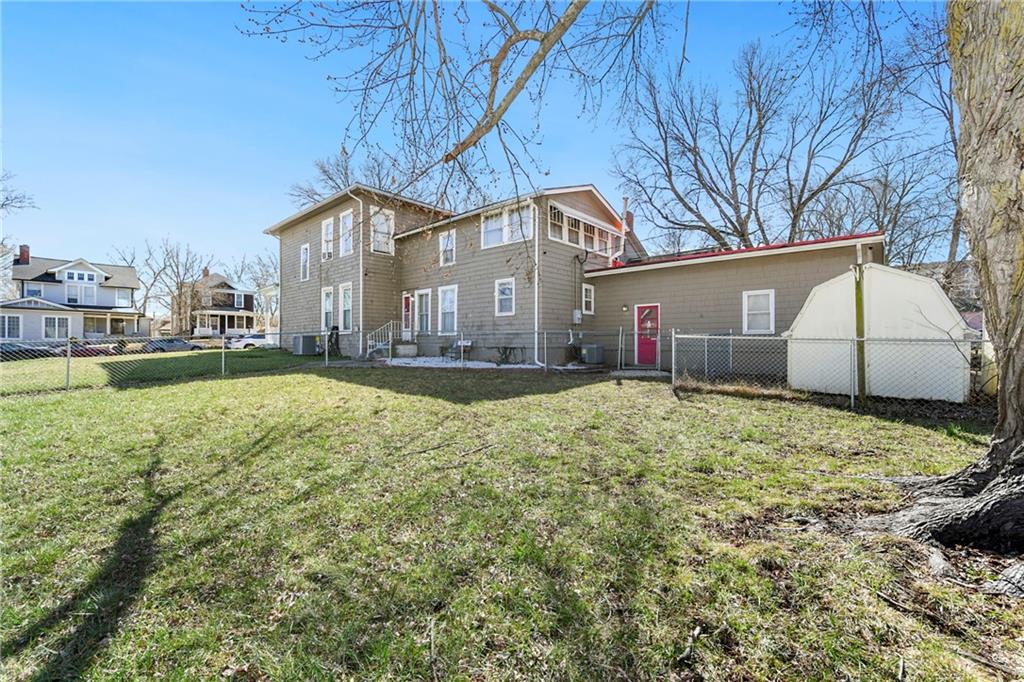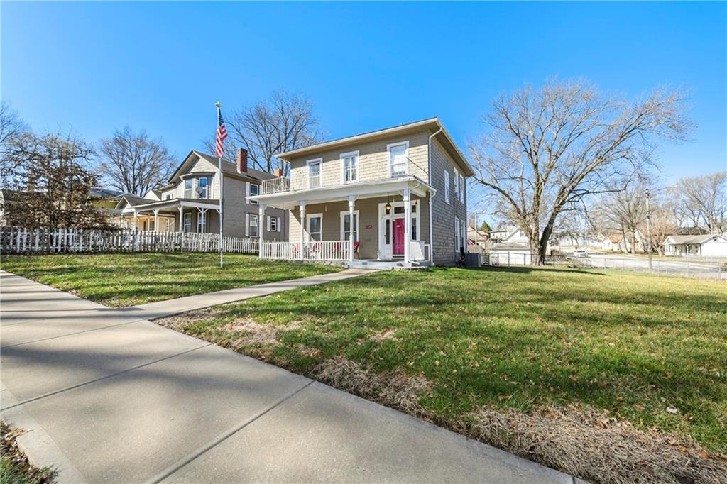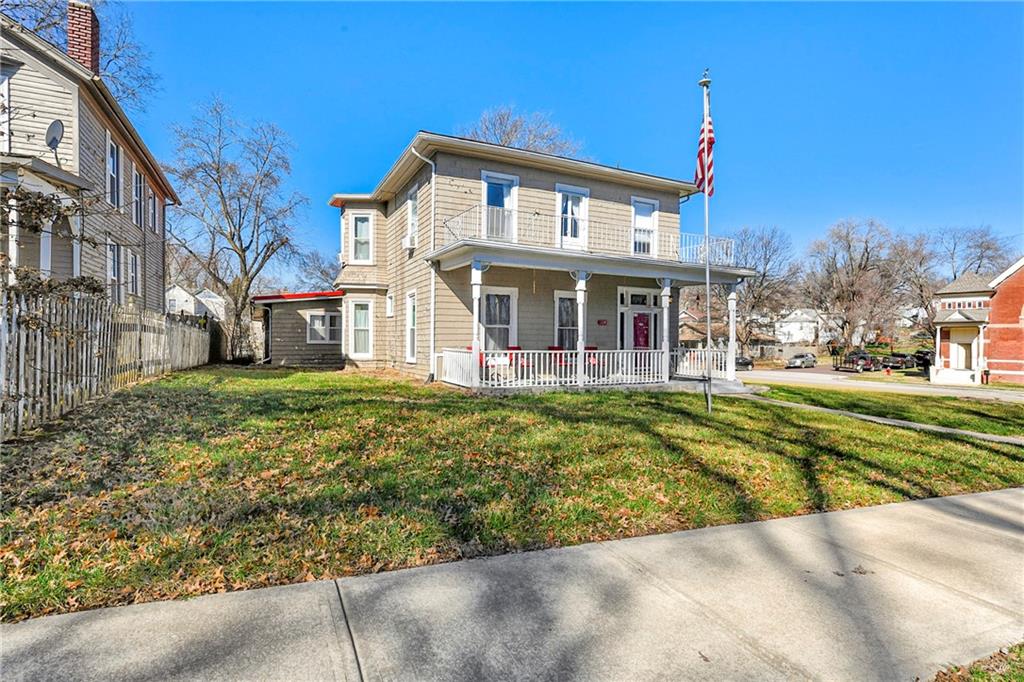 Looking for a spacious historic home near Fort Leavenworth that offers character, location, and opportunity? This charming 5-bedroom home on a 0.29 acre corner lot and delivers space, classic architecture, and unbeatable convenience to downtown amenities. Welcome to where timeless character meets everyday functionality. This impressive two-story home offers five generously sized bedrooms, beautiful hardwood floors, tall ceilings, and large windows that fill the home with natural light. The classic floor plan features multiple living areas, providing flexibility for entertaining, working from home, or creating comfortable family spaces. The kitchen offers abundant cabinetry and workspace, while the dedicated dining room provides the perfect setting for gatherings and holiday meals. Upstairs you will find three bedrooms with charming details that reflect the home’s historic personality. Step outside and enjoy the benefits of a large corner lot, mature trees, and a welcoming front porch ideal for relaxing evenings. The property also features a two-car garage, providing plenty of storage and parking. Located just minutes from Fort Leavenworth, downtown Leavenworth shopping, dining, and local attractions, this home offers a rare opportunity to own a property with both space and location. Homes with this much character and size in this location do not stay on the market long. Schedule your showing today before this opportunity is gone.
