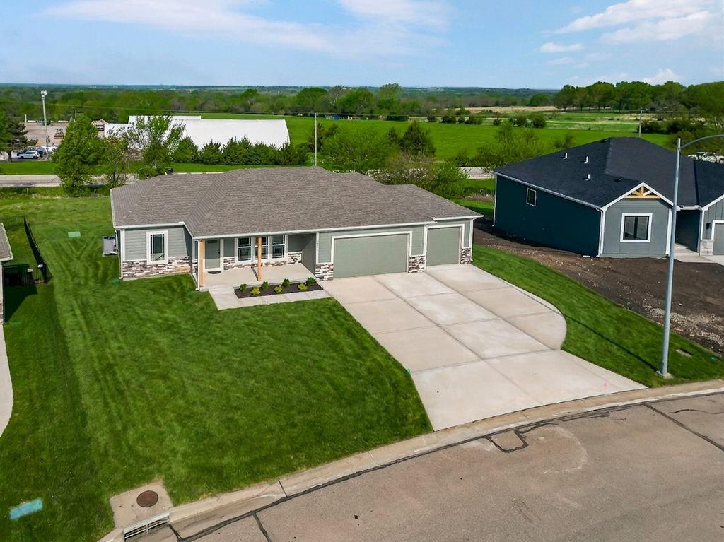 Welcome to Rockwood Estates — where modern comfort meets timeless ranch-style living. This newly constructed 4-bedroom, 3-bathroom ranch home offers an impressive 2,502 sq. ft. of thoughtfully designed living space, perfectly blending convenience, style, and room to grow. Step inside to an open-concept living area that invites natural light and effortless flow — ideal for everyday living and entertaining. The dining area just off the kitchen creates a seamless gathering space, while the beautifully updated kitchen features granite countertops, painted cabinetry, and modern finishes that elevate the entire home. The main level includes a generous living room, and the basement expands your possibilities with a second large living area, perfect for media, games, or hosting guests. You’ll also appreciate the unfinished basement space, offering flexibility for storage. Located in the desirable Rockwood Estates neighborhood and just moments from Paola Country Club, this home delivers the perfect combination of quiet suburban living and convenient access to recreation, shopping, and major routes. With the right amount of space, a smart layout, and premium updates throughout, this property is truly move-in ready and designed for long-term enjoyment. Come see!