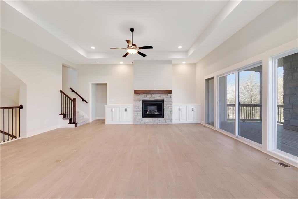 This stunning 1.5-story home blends luxury, comfort, and thoughtful design throughout. Offering 5 bedrooms and 4.5 bathrooms, the home provides the perfect layout for both everyday living and entertaining. The main level features a spacious primary suite with a spa-like bathroom retreat, along with an additional bedroom ideal for guests, a home office, or flexible living space. The open-concept living area showcases soaring ceilings, a dramatic floor-to-ceiling stone fireplace, and expansive windows that fill the home with natural light. The chef’s kitchen is the heart of the home, featuring rich cabinetry, granite countertops, stainless steel appliances, a large island with seating, and an oversized walk-in pantry. Upstairs, two additional bedrooms provide privacy and comfortable accommodations for family or guests. The finished lower level offers even more living space with a large recreation room, fifth bedroom, full bathroom, and generous storage—perfect for a guest suite, media space, or teen retreat. Step outside to enjoy the covered deck complete with a beautiful stone fireplace, creating the perfect setting for relaxing or entertaining while overlooking the peaceful wooded backyard. With a spacious three-car garage, modern finishes throughout, and a versatile layout designed for today’s lifestyle, this home truly offers the perfect blend of elegance and functionality.