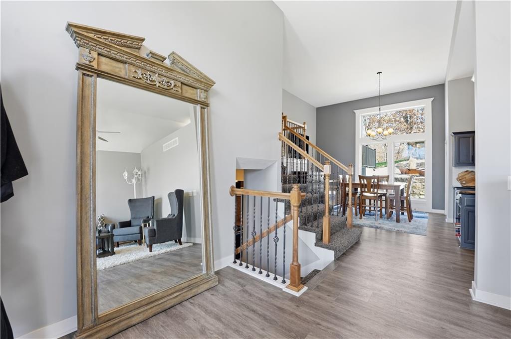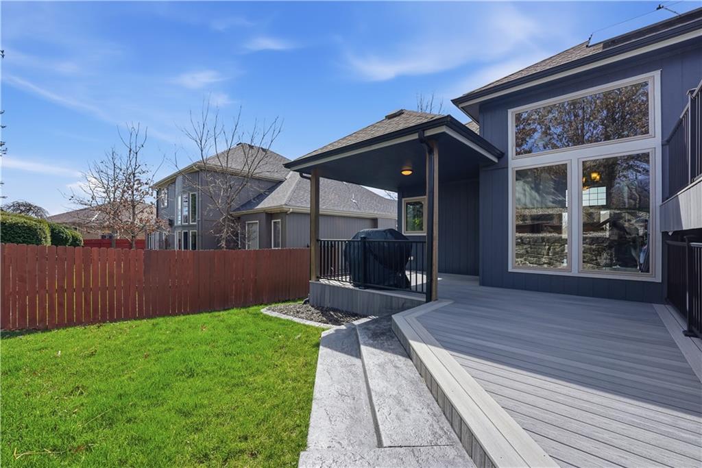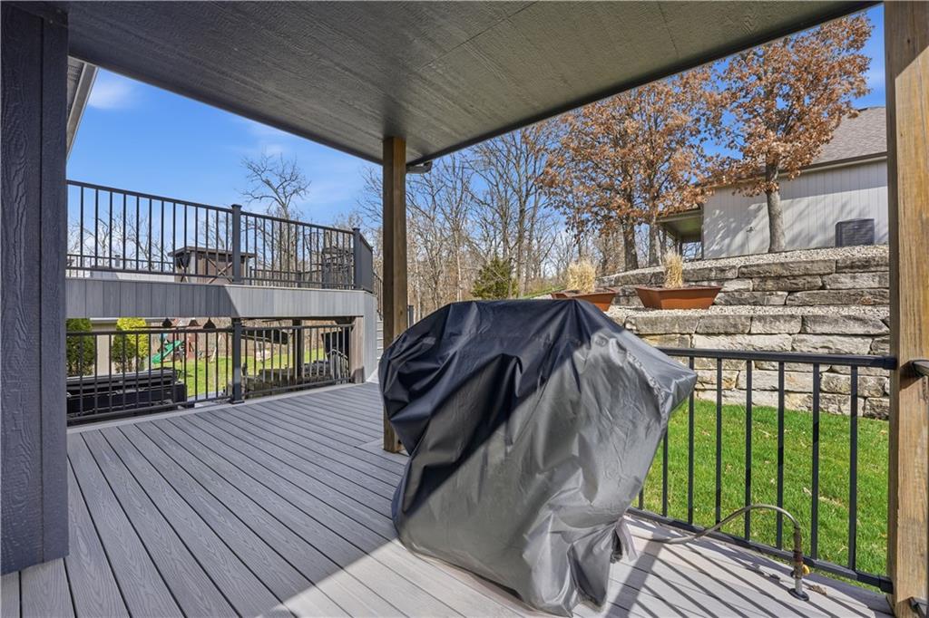 You’ll find modern luxury & unbeatable convenience in this move-in ready 4 bed, 3 ½ bath home packed with extra features. Experience the perfect blend of high-tech sustainability and resort-style living. Ideally situated on a quiet dead-end street in the highly rated Park Hill School District, this home is a commuter’s dream. Reach downtown in just 10 minutes and KCI in 15 min. The interior is designed for both grand entertaining and quiet comfort. The gourmet kitchen features a large center island, granite counters, gas cooktop and walk-in pantry for lots of storage. The spacious primary suite features a spa-like ensuite bath and direct access to the deck and play area. The flexible lower level features a full private suite with its own private bath—ideal for a home office or long-term guests. The outdoor living space is a true year-round retreat with a massive composite deck that spans the back of the house, featuring a covered section and a built-in natural gas grill with easy access to the kitchen. Below the deck is a private, stamped concrete patio with a "dry ceiling" system. Stay comfortable and dry in any season with a gas heater, outdoor TV, and a relaxing hot tub. The patio adjoins the large family room with fireplace, a half bath and convenient laundry room. All bedrooms have ceiling fans and generous closet space. More storage in the dedicated storage room accessed from the patio for all your seasonal gear and tools plus an additional storage room in the basement. Extensive professional landscaping includes durable poured concrete edging. The oversized 3-Car garage has two garage door openers & insulated steel doors. It is prepped for your EV charger and even more storage. Washer and dryer stay, and the solar panels are fully paid off, offering immediate energy savings. Enjoy the community amenities of this vibrant neighborhood with a huge community pool and a playground. Nearby is access to the Line Creek Trail system. This home checks all the boxes!