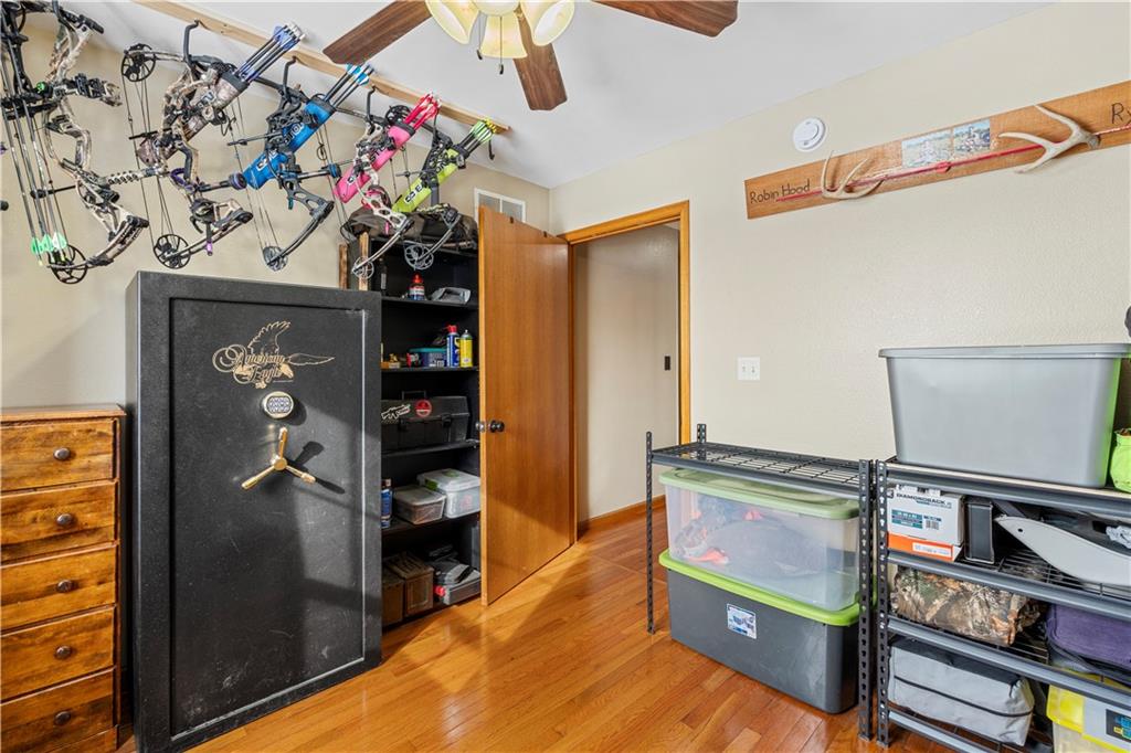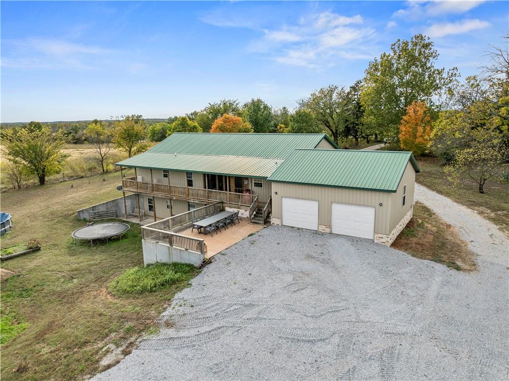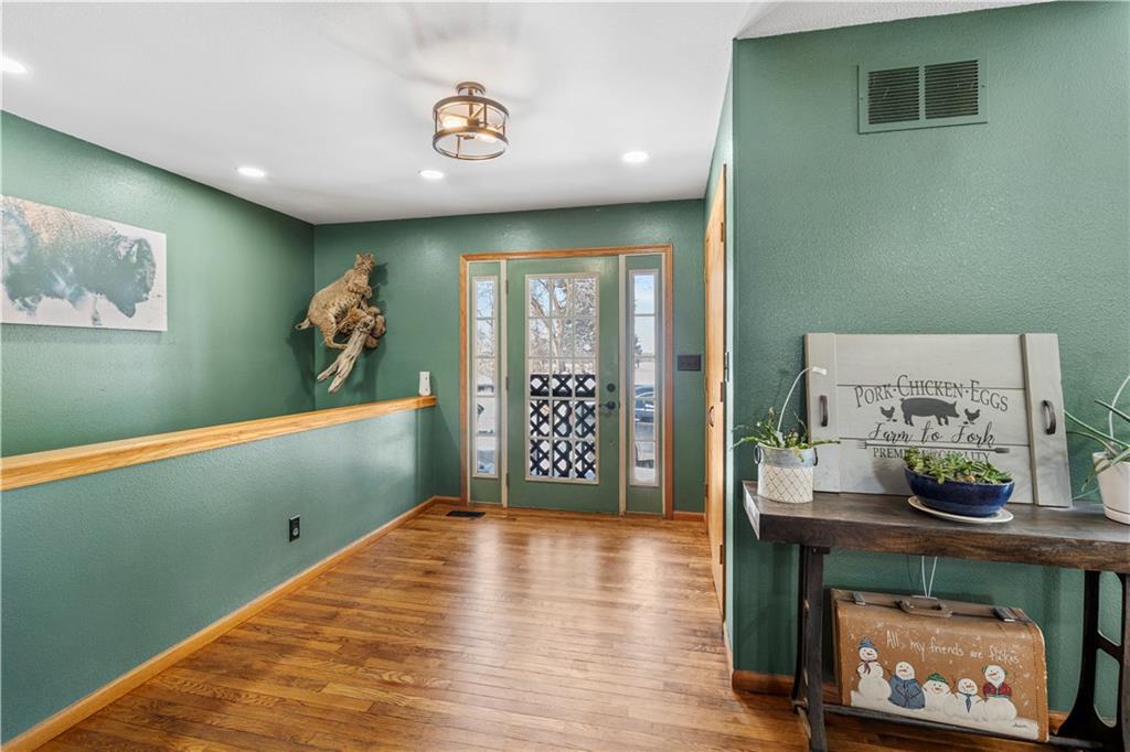 Pasture, ponds, timber, and a 4,000+ square foot home on 33 acres m/l to be determined by survey. This property offers a mix of open ground and mature timber along with two ponds, creating a private rural setting with room for livestock, recreation, or simply enjoying the outdoors while still a short drive from town. The ranch-style home features a full walk-out basement and more than 4,000 square feet of living space. Cedar siding, stone accents, and a metal roof provide lasting curb appeal. A wraparound covered front porch, finished screened-in porch, and covered rear porch overlook the surrounding acreage and ponds. Inside, the home welcomes you with a dedicated entry foyer and an open living concept with a vaulted wood-plank ceiling and large windows providing excellent natural light. Hardwood floors run throughout the main level along with wood trim and interior wood doors.The kitchen flows into the living and dining areas and includes granite countertops, ample cabinetry, and a stainless steel appliance package. The main level offers 4 bedrooms and 2.5 bathrooms, including a primary suite with a garden tub, walk-in shower, and walk-in closet. A laundry and mudroom provides convenient access from the attached garage into the kitchen. Storage and closet space is abundant throughout. The fully finished walk-out basement includes two additional bedrooms, a full bathroom, and a large recreation and living area with stained concrete floors. Mechanical and storage rooms are also located on this level with direct access to the backyard. A circle drive provides ample parking for trailers or recreational vehicles. Rear access to the attached two-car garage maintains a clean front elevation. RV utility hookups are located just south of the home, and an outbuilding sits behind the house. Property is also available with less acreage. See MLS #2599037 for an alternate listing including the home with approximately 10 acres m/l to be determined by survey.