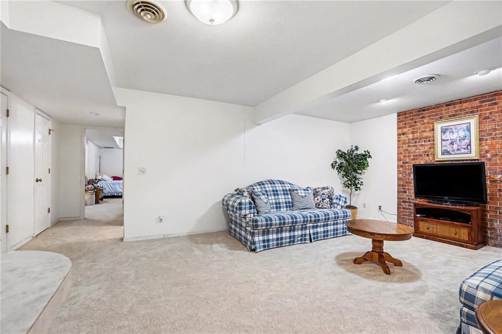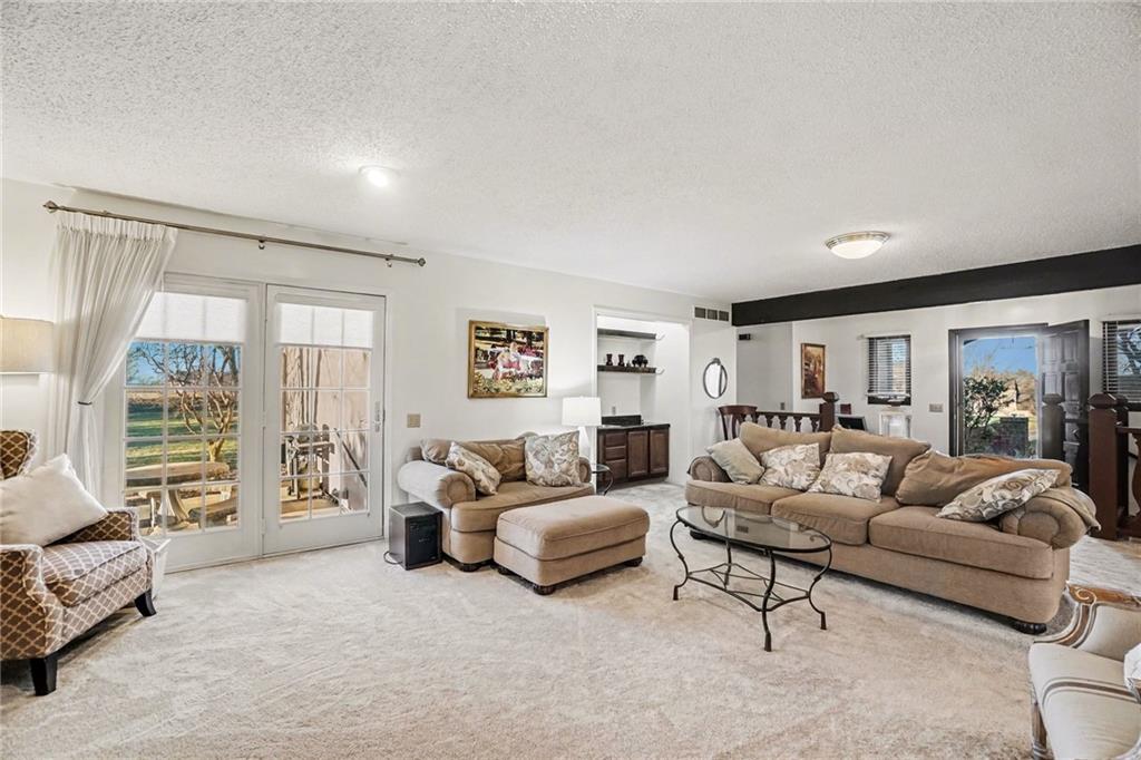 Cul-de-sac ranch • 0.43-acre lot • Main-level living with full basement - Savannah School District. Brick ranch-style home on a 0.43-acre lot at the end of a cul-de-sac in Savannah School District, offering true main-level living. The main floor includes three large bedrooms, and the primary en suite bathroom has a new walk-in shower. Entertaining is a dream in the open-concept layout connecting the renovated kitchen, dining area, and living room. The vaulted-ceiling living room, with a wood-burning fireplace, is surrounded by large windows and two French doors bringing natural light into the main living spaces. Recent updates include new carpet, fresh interior paint, a renovated kitchen, and new primary bedroom shower The lower level features a conforming fourth bedroom with a walkout door, a full bathroom complete with a jacuzzi tub, and a spacious family room for hours of fun. Approximately 800 square feet of unfinished basement space provides room for storage or future finishing. The home includes a two-car attached garage and a patio located just outside the main living area to enjoy a cup of coffee or viewing nature. The property backs to green space and natural surroundings while offering convenient access to Highway 71 and nearby shopping and services.