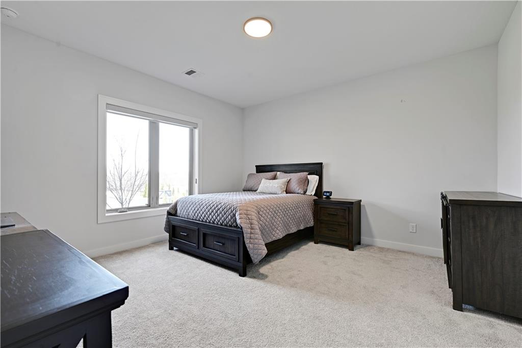 Perfect location, nearly brand new home, finishing touches already done for you! This reverse 1.5 story villa, located in Crestwood Village - a maintenance provided community - features an open concept floor plan. This stunning home has tons of natural light coming through the walls of windows in the great room with fireplace. Warm, wide-plank hardwood floors throughout the great room, dining area, kitchen and mud room. Enjoy cooking in the gorgeous kitchen featuring a center island, custom cabinets, quartz countertops and stainless appliances. You will FALL IN LOVE with the huge, L-shaped, walk-in pantry (including a counter top to host a coffee bar/air fryer) and so much accessible kitchen storage. The private owner's suite includes an ensuite with double vanities, quartz countertops, spacious walk in shower, and a gigantic walk in closet featuring 3-tier/off season storage. Second bedroom/study on the first floor with walk in closet conveniently located adjacent to a full bath. Take the stunning, U-shaped staircase down to the finished, walkout basement, LVP floor with wet bar where you can entertain and enjoy watching the game. Two more bedrooms and full bath are perfect for guests! Abundant storage in the unfinished area of the basement. Nice finishing touch - painted floors in the unfinished storage area. Sellers have installed high-end window treatments that will remain with the home, along with fridge, washer and dryer. Come by to see this beautiful community in a fabulous location. Close to shopping, restaurants, grocery stores, entertainment, medical facilities and walking trail. Enjoy maintenance provided living for $267/month - included is lawn maintenance, snow removal, exterior paint and more! Vibrant community. Cascading views. Exceptional, well-manicured landscaping. Fences allowed at Crestwood Village!