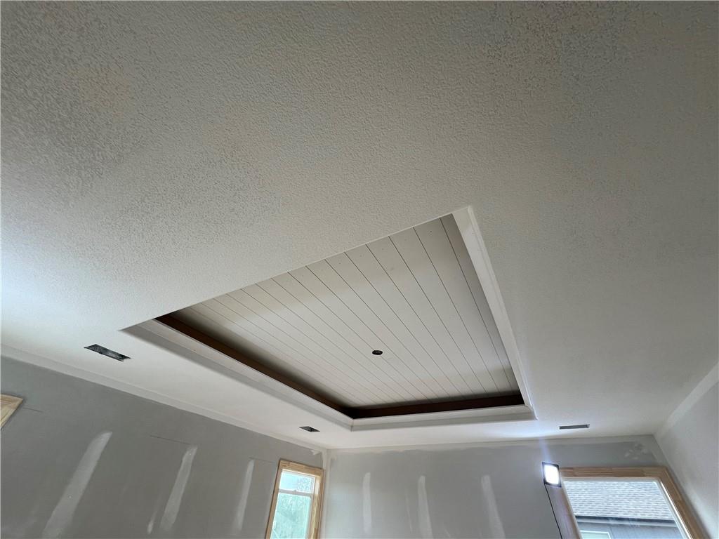 Beautiful Delaney Plan with expanded pantry and beautiful trim upgrades throughout the home. Custom trim accent wall in the dining room, Kitchen with large island and separate table space, stained lower cabinets with enamel uppers, upgraded kitchen backsplash. Black composite kitchen sink with pull down faucet. Linear Fireplace (heat producing) with tile upgrade. Matte Black Faucets and Fixtures throughout. Master Bedroom includes shiplap upgrade in color-changeable LED lit vault. Master Bath with custom tile pan shower, freestanding tub and framed mirrors. Includes blinds, sprinkler system and garage door openers. Upgraded attic insulation, smart thermostat, Low-E windows, and so much more! Taxes and square footage are estimated. Home is about to enter paint stage 3/10/26.