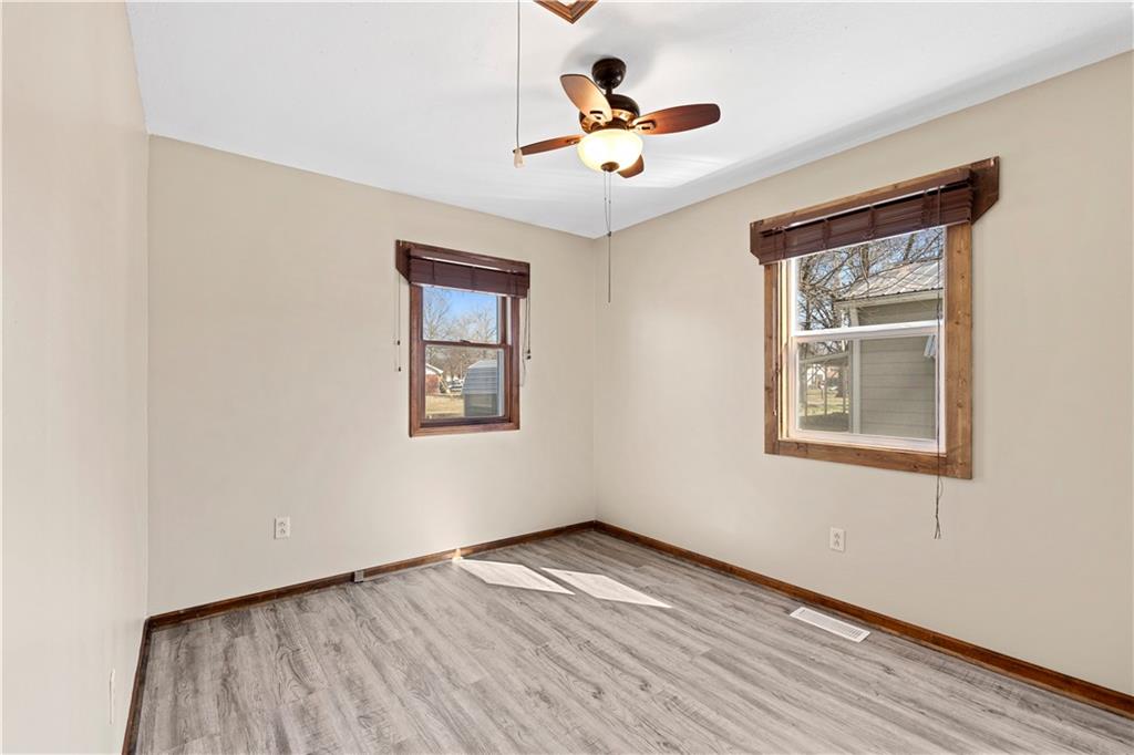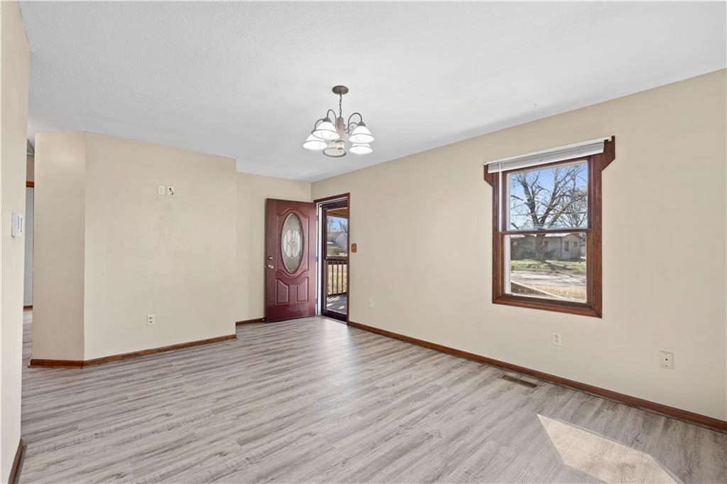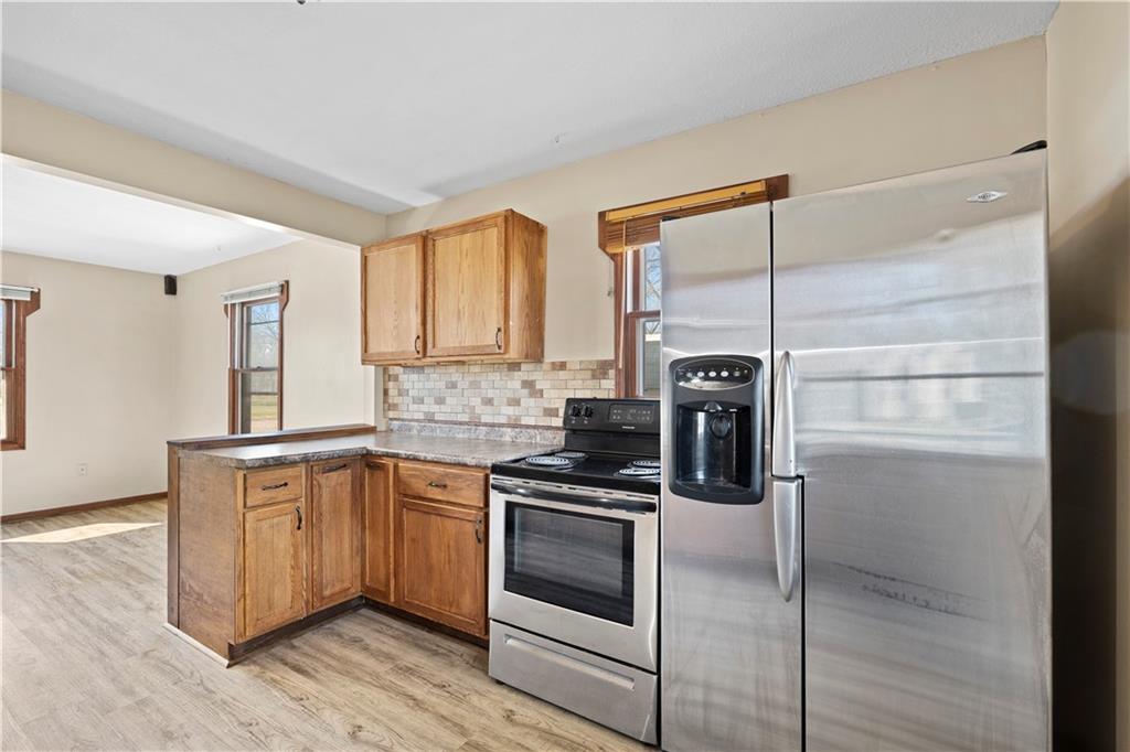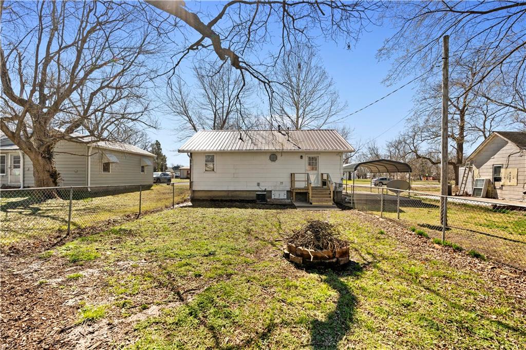 This well maintained 2 bedroom, 1 bathroom home, built in 1995, offers comfortable living with thoughtful updates throughout. Inside, you’ll find new luxury vinyl plank flooring and fresh interior paint that give the home a clean, updated feel, while wood trim throughout adds warmth and character to the living spaces. A durable metal roof provides long term value and low maintenance. The kitchen offers generous cabinet and countertop space, a tile backsplash, and includes the refrigerator and range with the sale. The layout flows easily into the living and dining areas, creating a functional space with plenty of natural light. The bathroom features tiled walls with decorative accents, a large vanity, and a tub and shower combination. Step outside and enjoy the screened in front porch, a great spot to relax and unwind. The fenced yard provides space for pets, gardening, or outdoor activities. Additional features include a detached garage, covered carport area, and convenient rear alley access for additional parking and easy entry to the property. The manageable size and practical layout make this property well suited for a variety of living needs. With recent interior updates and durable exterior features, this home offers a move in ready opportunity in Rich Hill, Missouri.