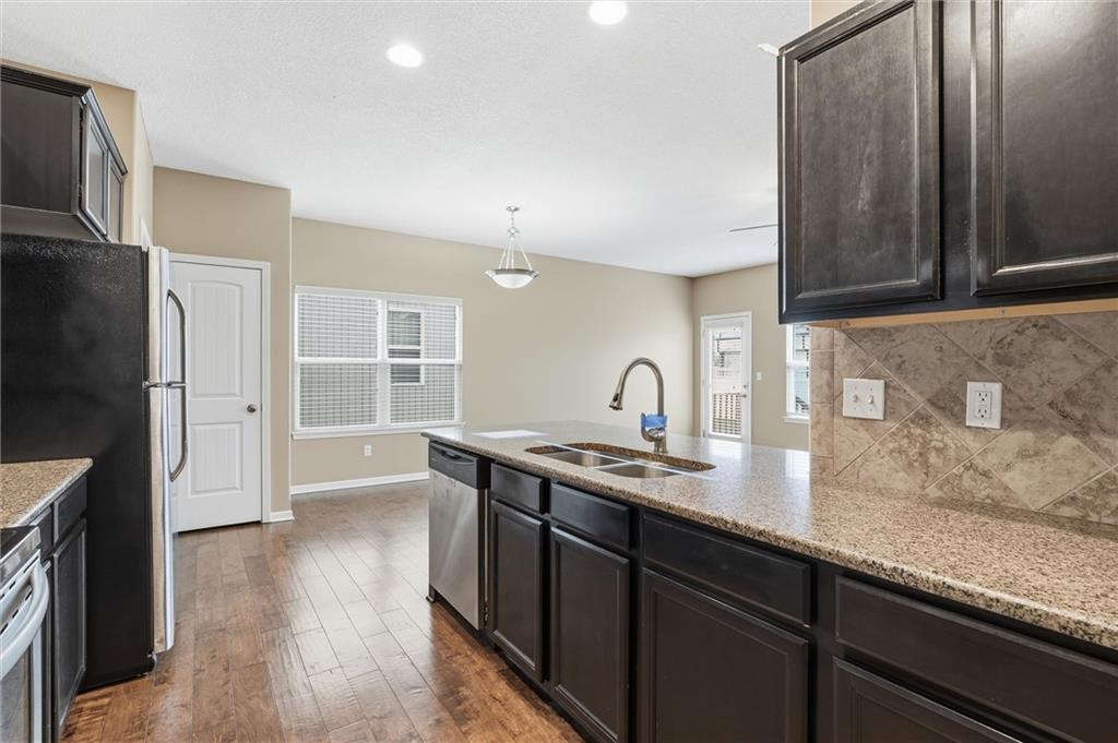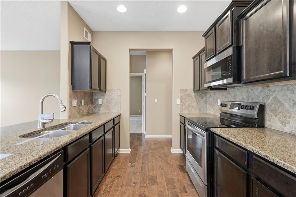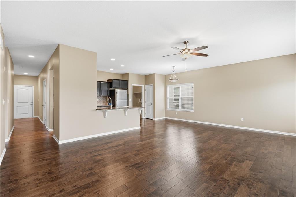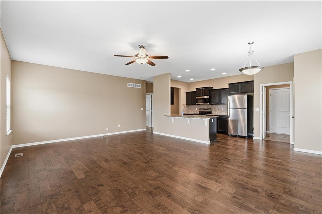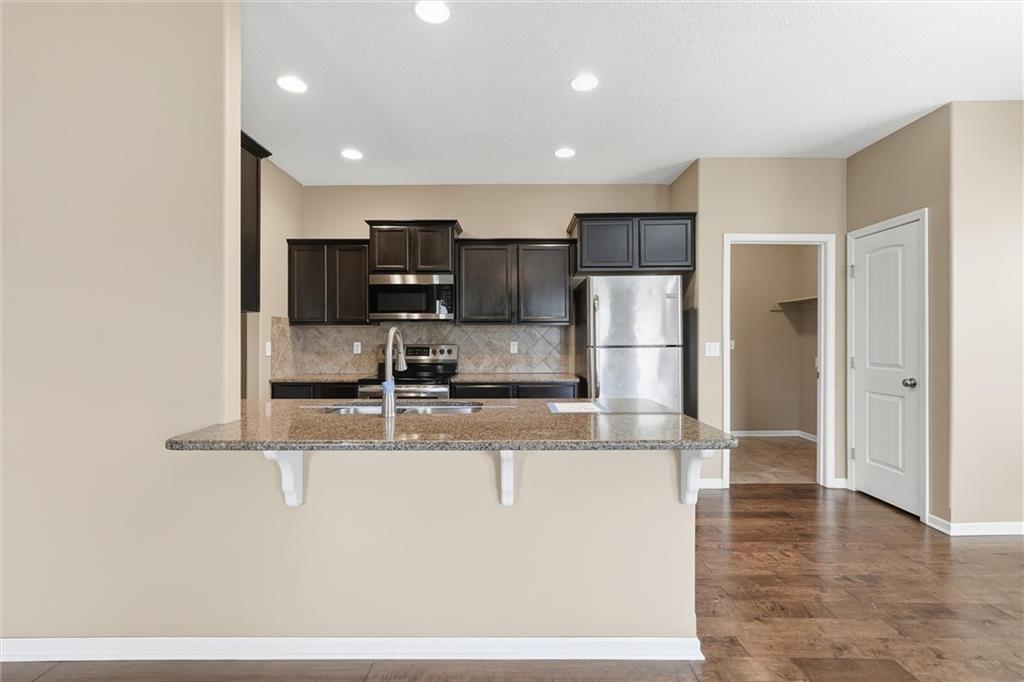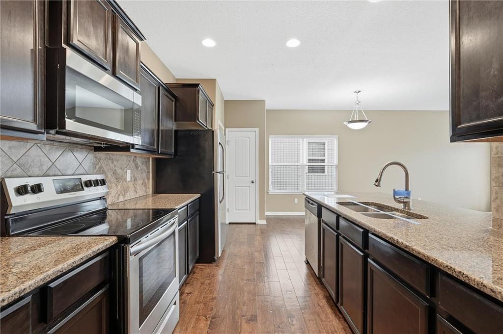 This 3-bedroom, 2-bath home features wood flooring through the main living areas, with comfortable carpeted bedrooms. The kitchen includes granite countertops, stainless steel appliances, and an eat-in dining area with nearby laundry for added convenience. The primary suite provides a private bath and ample closet space. Additional highlights include an irrigation system, a spacious basement ideal for storage or future finishing, and an attached 2-car garage. Conveniently located with easy access to shopping, dining, and major highways.
