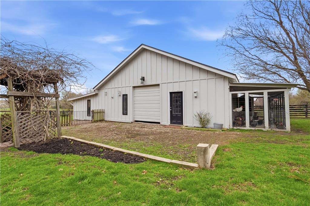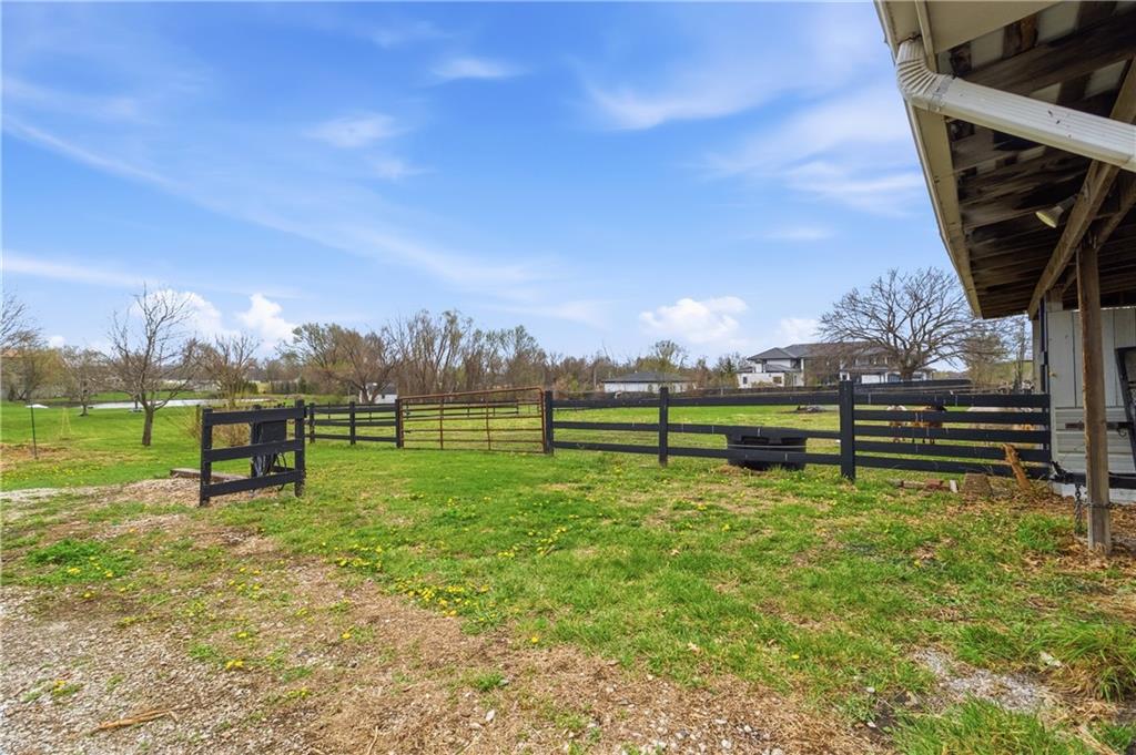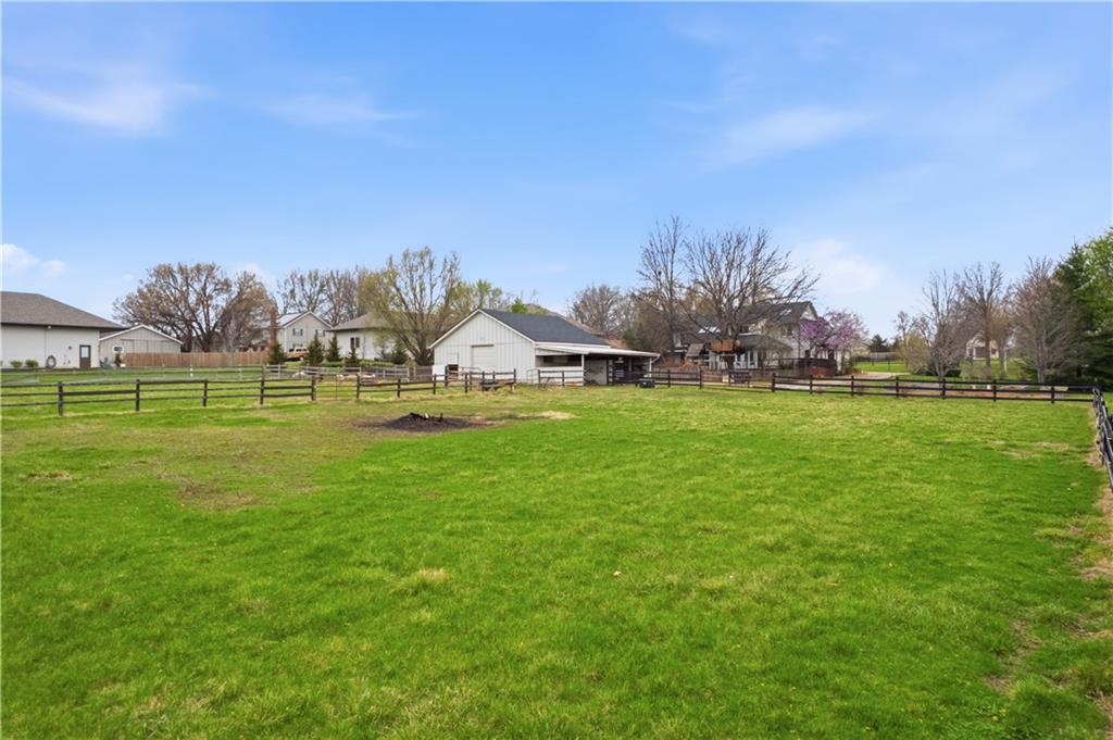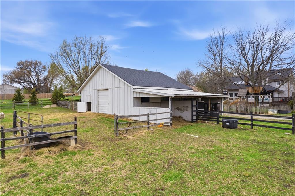 Rare opportunity to own 2 private acres with fully equipped barn in the heart of Overland Park in the coveted Blue Valley school district. Ideal for horses, hobby farming or anyone craving space proximate to the city...this is the spot! Sellers have done most of the heavy lifting with new roof, foundation repair, new windows, and a newly finished basement with an additional bedroom. Outside, your barn w/ 3 horse stalls, tack room, chicken coop and two fenced pastures allow you to enjoy a little country living in the city. Fresh eggs in the morning and the sounds of birds chirping is a way of life here. This property also presents an exceptional long-term opportunity for you to expand or build your dream estate. A truly rare chance to own land, privacy and possibility in one of Overland Park's most desirable areas. Not to be missed!