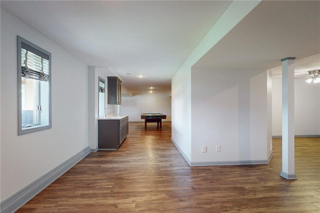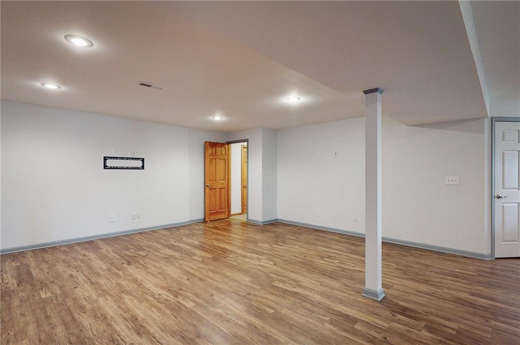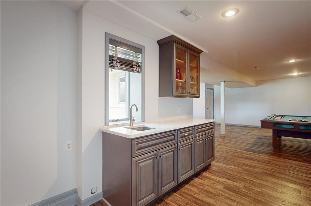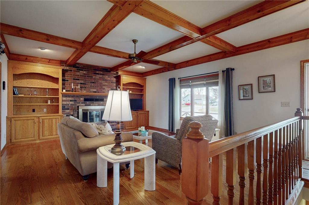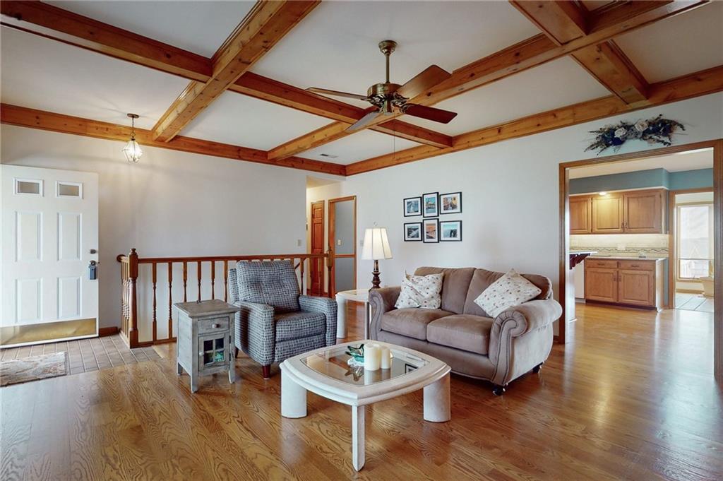 This meticulously maintained one-owner ranch home sits on a large corner lot and is truly move-in ready! The main level features three spacious bedrooms and two full bathrooms, with a fourth non-conforming bedroom and third full bath in the finished lower level. The home also offers a 3-car garage (2 on the main level 24x25 and 1 in the lower level 13x23). Inside, you’ll find beautiful hardwood floors in the living room, kitchen, and hallway. The inviting living room features a stunning fireplace with built-in shelving on both sides, creating a warm and welcoming focal point. The main level also showcases solid wood six-panel doors throughout. The updated kitchen features Cambria quartz countertops and opens to a wonderful sunroom that is heated and cooled with the rest of the home, complete with Anderson windows—perfect for enjoying year-round views of the backyard. Step out onto the 15x15 deck overlooking the spacious backyard, which includes a garden area ready for planting and a mature pear tree. The exterior boasts James Hardie fiber cement siding and a 50-year GAF Timberline Ultra HD Class 3 impact-resistant roof. Gutters are equipped with leaf guard covers for low maintenance. The finished walkout lower level features LVP flooring, a wet bar with quartz countertops, and plenty of flexible space for a family room, game area, workout space, or entertaining. It also provides access to the third garage and includes a concrete safe room located under the front stoop. Conveniently located just one block from the Raymore Recreation Center, park, playground, walking trails, pickleball courts, and more!