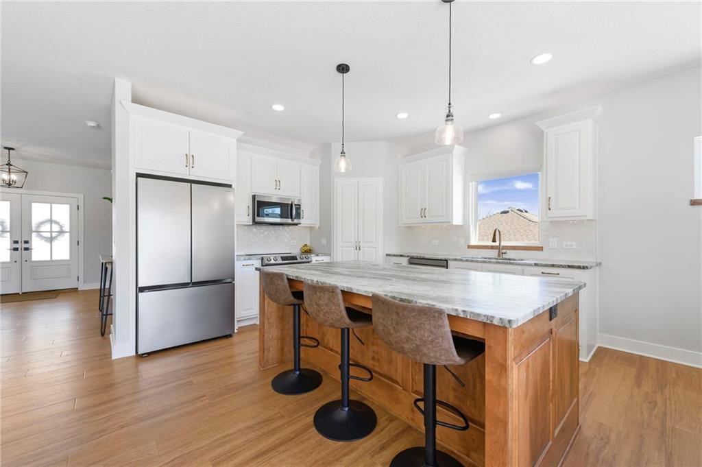 Looking for something different than the typical subdivision? This home is located in a small neighborhood of only 30 homes, providing a quieter, more private place to call home in the Northland. This home is the builder’s personal residence built in 2024, offering quality construction and thoughtful design. It features 4 bedrooms, 3 full baths, and a 3-car garage. The lot provides comfortable outdoor space while remaining easy to maintain. All kitchen appliances are included in this all-electric home. The kitchen is designed to impress with a blend of painted and stained cabinets, quartz and granite countertops, and a large island that is ideal for baking, entertaining, and everyday cooking. The primary suite is a well-designed space organized for comfort and easy flow. The bedroom has generous space, giving you plenty of room to express your personal style. The primary bath includes a double vanity, a large walk-in shower, and a private water closet with a pocket door. The suite is completed by a masterfully designed walk-in closet that connects conveniently to the laundry room. The daylight lower level has two bedrooms, a full bathroom, and a large recreation room that can be used for entertaining, hobbies, or additional living space. A nicely sized bar comes with a mini refrigerator that is perfect for beverages and snacks when entertaining. The home was thoughtfully designed with plenty of storage throughout. The old teacher in me gives this home an A+.
