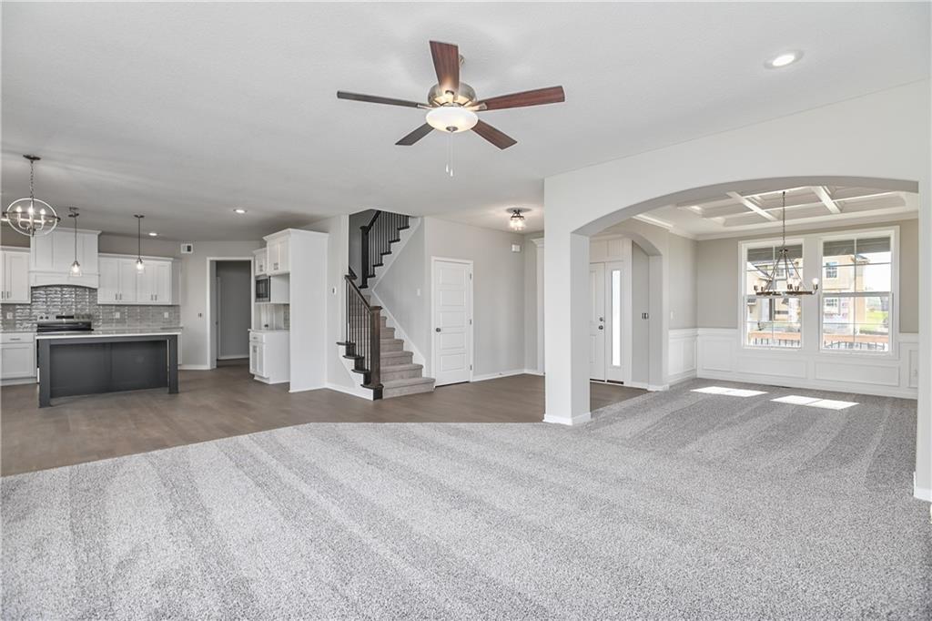 The popular Levi II by Prieb Homes is now available on a beautiful flat lot. The open-concept main floor features a spacious kitchen and breakfast area, a larger granite center island with ample seating. Kitchen offers soft close doors and drawers. Enjoy versatile living with a main floor flex room—perfect for a home office or 5th bedroom—plus a mud room with boot bench and entry closet. Upstairs, the expanded primary suite boasts a separate sitting area, larger walk-in closet for 2 different sections, and an upgraded primary bath with a freestanding tub. The laundry room has been enhanced with additional workspace, and the open loft with window provides extra living space. Located within walking distance to Lake Olathe, this home also offers access to neighborhood amenities including trails, a pool, and playground. Don’t miss your chance to own this upgraded and spacious home in a prime location!
