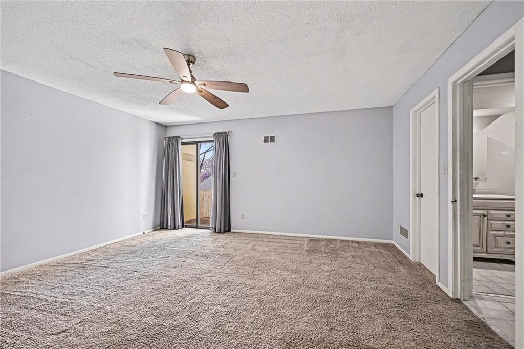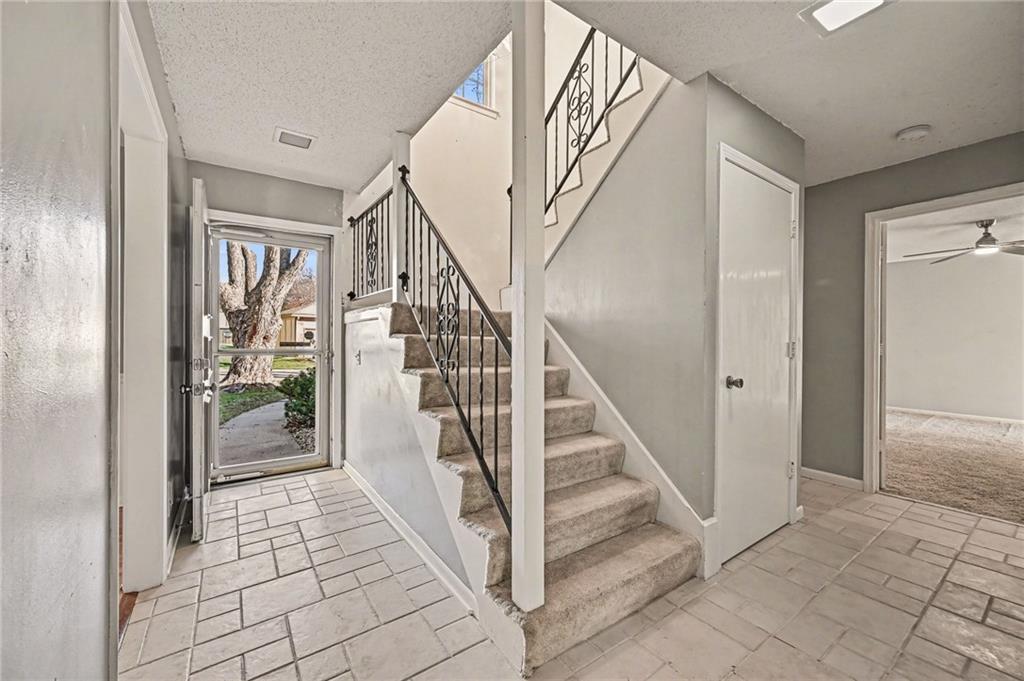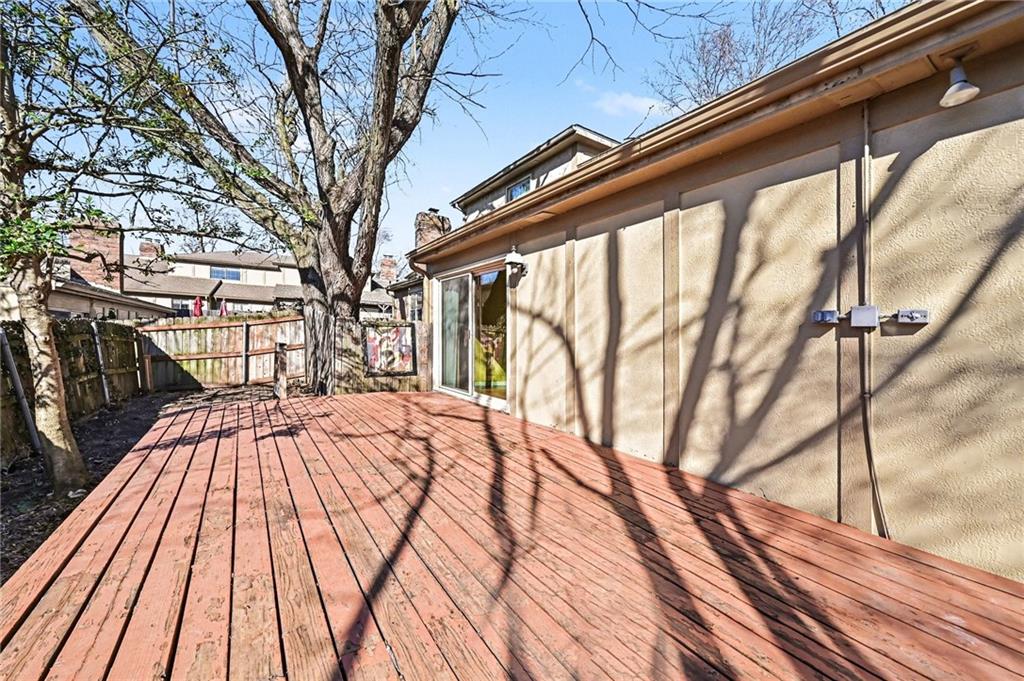 PRICE IMPROVEMENT! INVESTOR SPECIAL! Similar homes have sold recently for 350K-381K! DON'T MISS a chance for a light-filled 3 BEDROOM, 2 bath, town home ideally positioned on a secluded dead-end street—one of the most desirable placements in the community—walkable to Oak Park Mall shopping & dining. This home offers two potential primary suites (one on the main level and one upstairs) along with maintenance-provided living in a highly desirable central Overland Park location with community amenities including swimming pools, tennis courts, and clubhouse facilities nearby. A major recent improvement includes a BRAND NEW ROOF with impact-resistant Class 4 shingles, offering added peace of mind and potential insurance savings after recent Midwest storms. SELLER PAID HOME WARRANTY INCLUDED. Inside, the home features a light-filled great room with soaring vaulted ceilings, hardwood floors, and a striking fireplace anchoring the living space. The kitchen includes granite counters, an eat-in dining area, ALL APPLIANCES STAY! The main-floor primary suite includes a full bath and generous double closets, offering comfortable main-level living. Upstairs are two additional bedrooms and another full bath, including a bedroom with a walk-in closet, providing flexibility for a second primary suite or office Outdoor living is easy with a large private deck and little yard to maintain. Enjoy a low-maintenance lifestyle with HOA services including lawn care and snow removal. The daylight bsmnt is partially finished and offers great potential for additional living space, recreation room, home office, or future 4th bedroom. Lovingly owned for 25 years, the home is move in ready while offering buyers the chance to update over time. Sold as-is by the trust and priced to reflect condition, offering compelling value and opportunity to build equity in a prime Overland Park location. Homes with this combination of privacy, walkability, and value rarely become available
