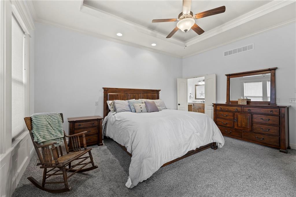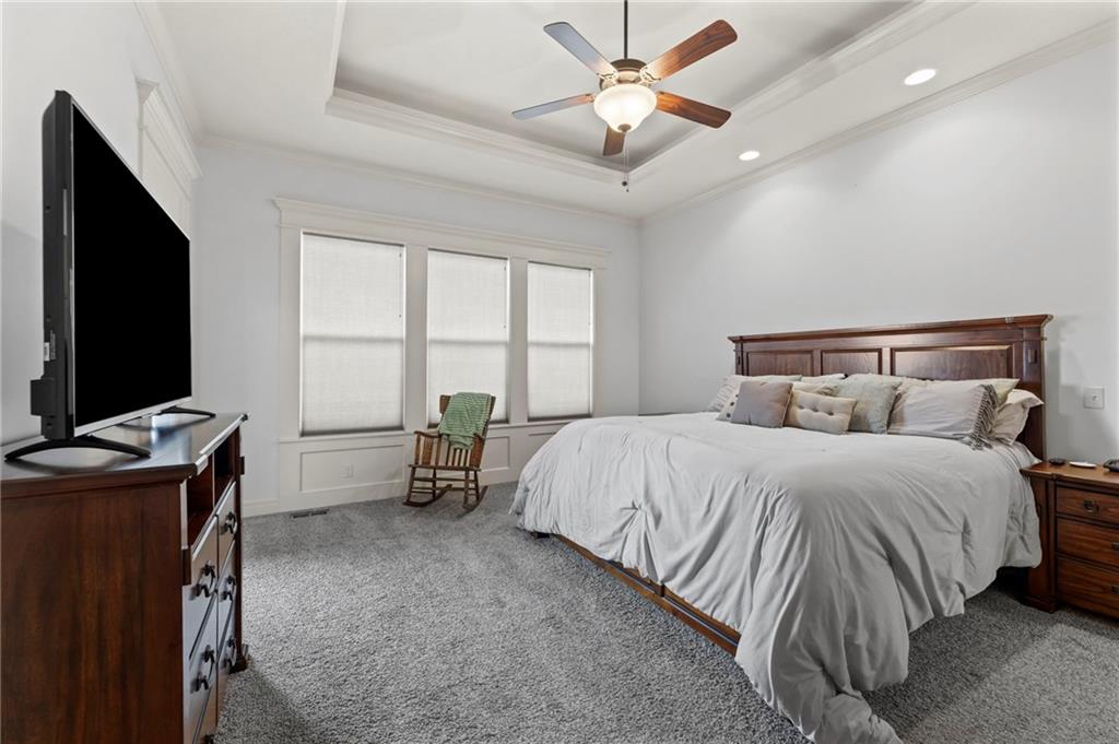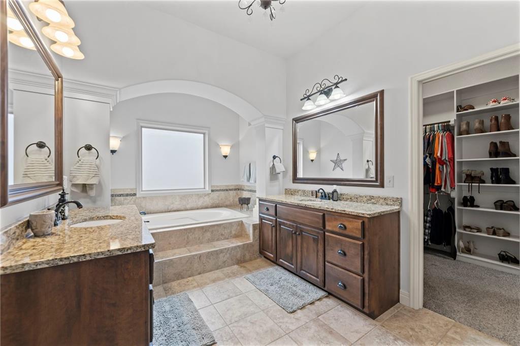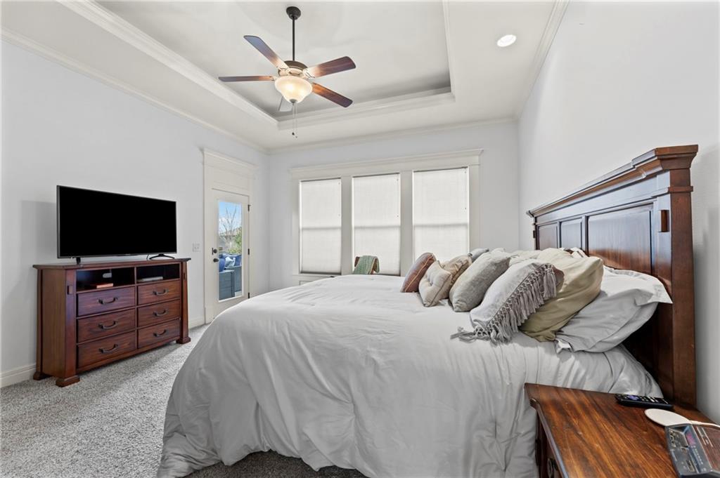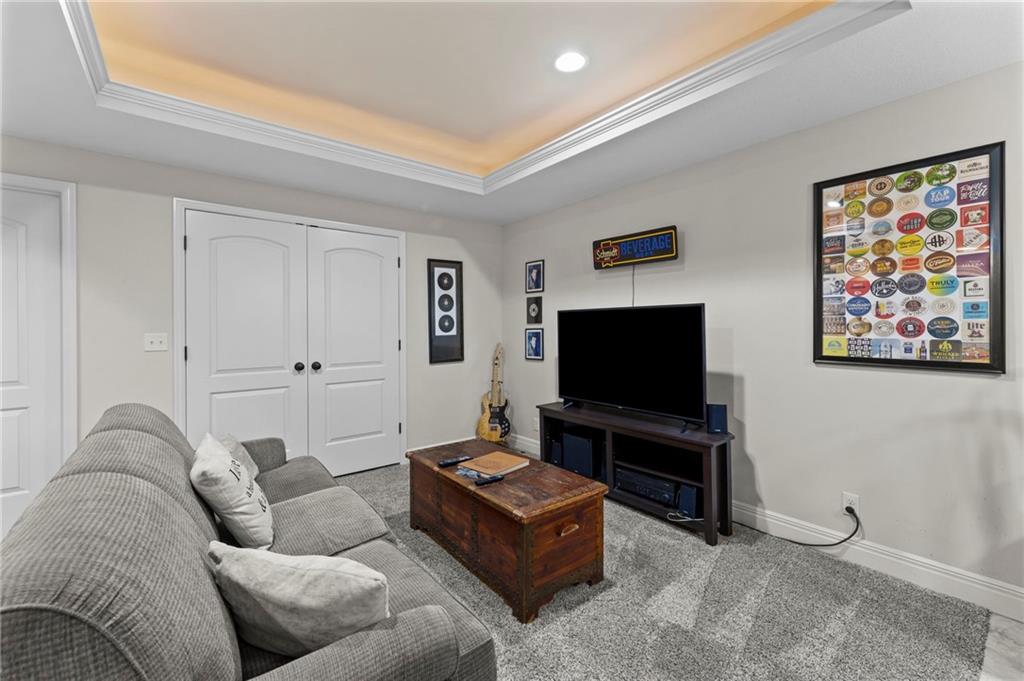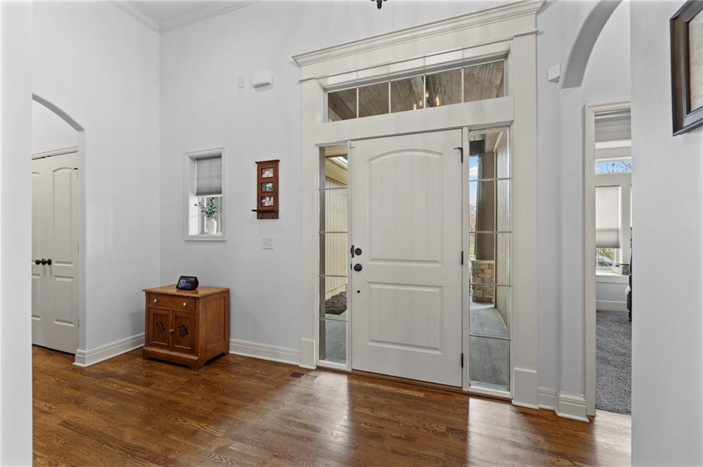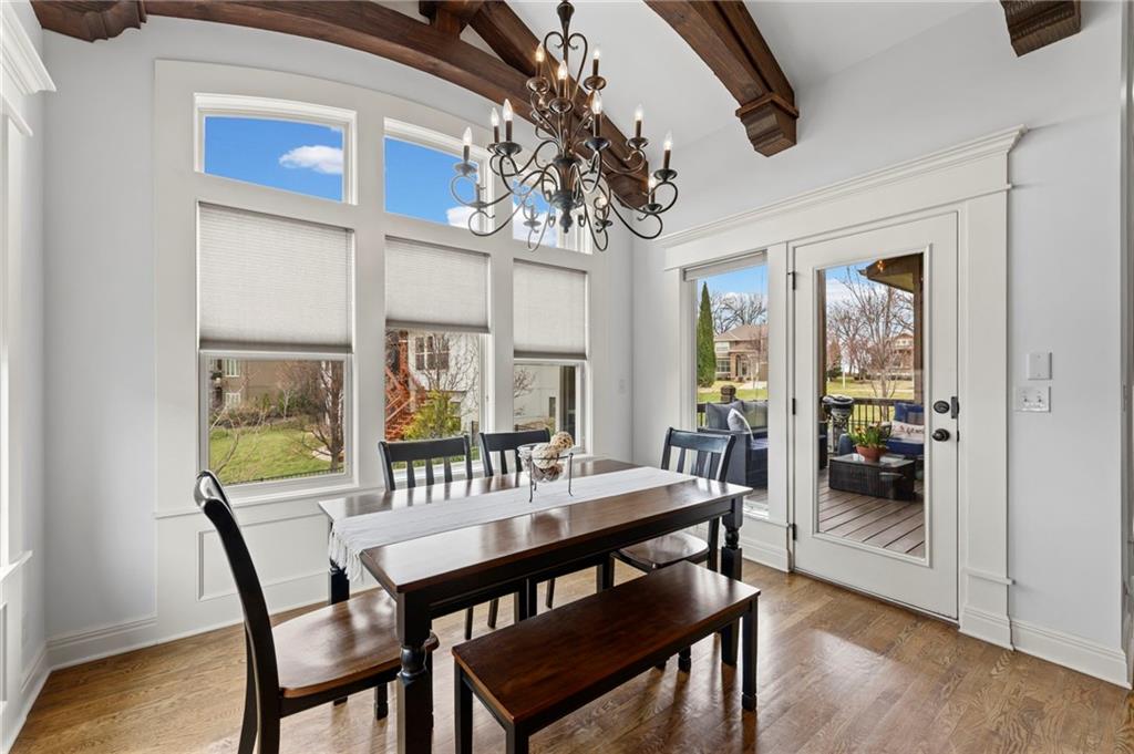 This fabulous Reverse 1.5 Story offers a blend of Craftsman detail and modern comfort. The open-concept layout features vaulted ceilings with exposed beams, hardwood floors, and a floor-to-ceiling stone, see-through fireplace creating a seamless indoor-outdoor connection. The spacious kitchen offers a large granite island, custom cabinetry, built-in appliances, and a walk-in pantry. Dining area is filled with natural light and connects seamlessly to the main living space. Spacious primary suite features tray ceilings and a well-appointed bath with granite double vanity, soaking tub, and walk-in shower, along with a generous walk-in closet. A second bedroom is located on the main level. The finished walkout lower level includes two additional bedrooms with large walk-in closets, a family room, and a full wet bar, offering excellent space for entertaining and everyday living with easy access to outdoor areas. Located in the desirable Southbridge/Stonebridge community, residents enjoy access to multiple neighborhood amenities including four zero-entry pools (one Junior Olympic size), two clubhouses with fitness facilities, playgrounds, pickleball courts, volleyball areas, and connected walking trails. Just minutes away, Heritage Park offers over 1,200 acres of recreation including a 40-acre lake, off-leash dog park, disc golf course, golf course and driving range, picnic shelters, trails, and multiple athletic fields for soccer, football, and more. Convenient access to nearby shopping, dining, and major highways adds to the appeal, making this location ideal for both everyday living and easy commuting.