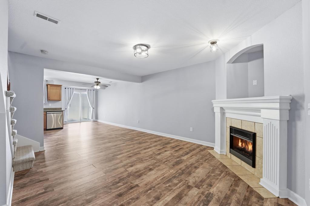 Welcome to this move in ready townhouse with 2 large bedrooms and 2.5 bathrooms! This home has been freshly professionally painted & new flooring has been installed. The location is near many walking trails, shopping, dining, schools and is a super short drive to the airport! The living space feels airy with the kitchen / dining and great room open to one another with the continuous LVP flooring and consistent paint scheme. The great room feels cozy during the winter with the gas fireplace! The main level has a storage closet as well as 1/2 bath for guests. Access to the backyard and a private patio are through the slider doors. The trees in the backyard provide the privacy you will love! You will want to start and end your days on the back patio, which could also be a great entertaining space. The primary bedroom upstairs has a walk-in closet, vaulted ceiling fan, accent wall and the ensuite bathroom is so convenient! Just a few steps from both upstairs bedrooms is the hall bath with a nice laundry closet. The washer and dryer are included! This townhome is just a short distance to the community pool, clubhouse, and outdoor play area. HOA also provides lawn care. This well-cared for townhouse is ready for new owners! Taxes are estimated as well as square footage.