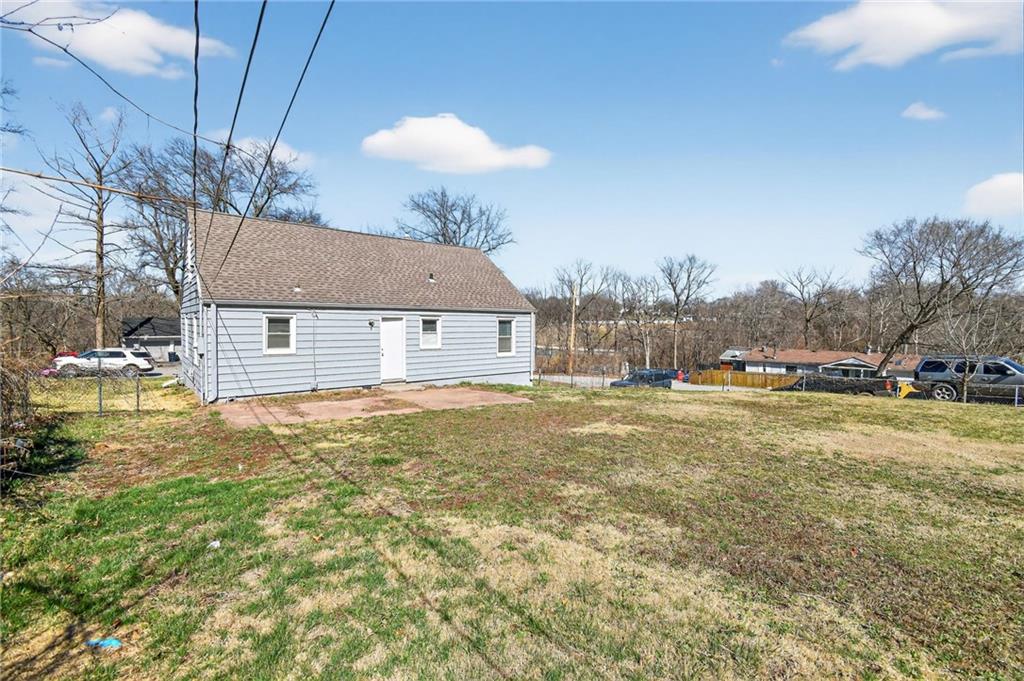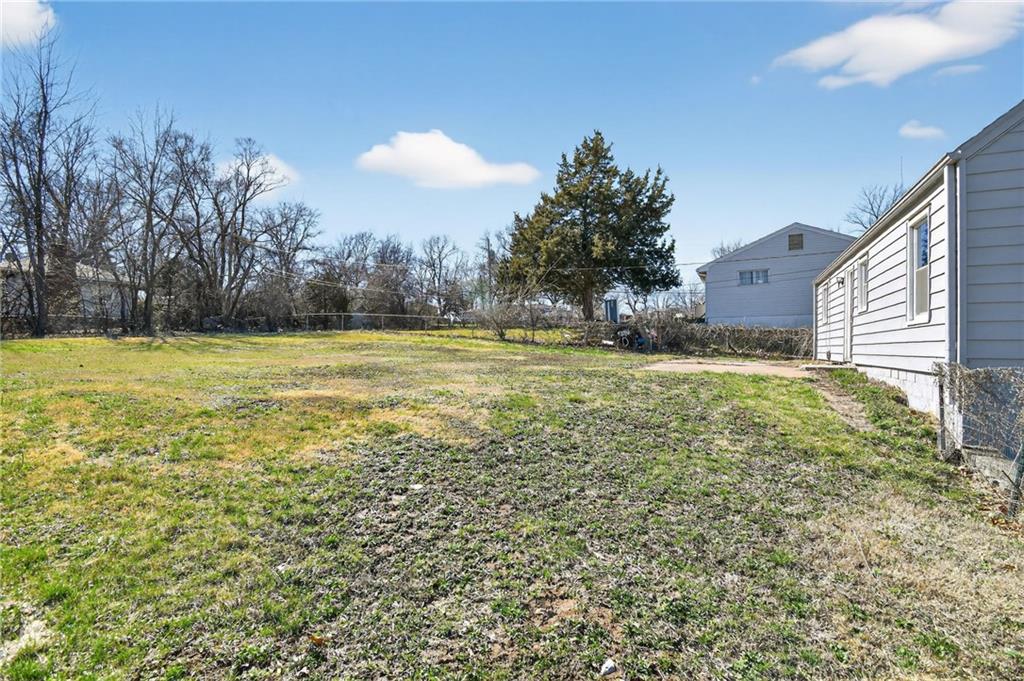 This 1,152 sq ft residence features a unique 1.5-story layout with a charming walk-up porch entry. The interior includes a 3 bedroom, 1.1 bathroom configuration with 936 sq ft on the main levels and 216 sq ft of finished basement space. The main floor provides a bright living area leading into an eat-in kitchen with functional cabinetry. A primary highlight of this property is the large 0.30 acre lot, which features a substantial storage building and shop out back, providing significant space for equipment, hobbies, or additional storage. The home is finished with low-maintenance metal siding and includes an attached side-entry garage. Positioned in the Melton Add subdivision within the Kansas City School District, this 1956-built home provides a solid foundation and a traditional silhouette. The property provides easy access to the I-70 corridor and local recreation at nearby Ashland Square Park, offering a blend of quiet residential living with streamlined commutes in the Kansas City area.