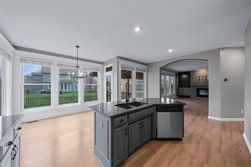 Hurry to see this beautifully updated home with 3-car garage, 4 bedrooms & 3-full bathrooms upstairs, conveniently located near Lee’s Summit and Blue Springs! From the moment you enter, you’ll notice the newer engineered wood floors, stunning arched doorways, and the updated fireplace wall in the family room. The home feels open and airy with a dramatic two-story entry and floor-to-ceiling windows that fill the space with natural light. All bedrooms are generously sized and feature private bathrooms and walk-in closets, offering comfort and privacy for everyone. The spacious kitchen includes an island, informal dining area, and pantry—perfect for everyday living and entertaining. A major bonus is the natural gas–powered automatic whole-home generator, providing peace of mind year-round. The finished lower level features unique stained concrete flooring, solid maple cabinetry, solid surface countertops, a half bath, and a large living area ideal for recreation, entertaining, or relaxing. Step outside to an extra-large fenced yard located on a quiet cul-de-sac. Enjoy the covered patio, firepit, and one of the largest and most beautiful yards in the neighborhood—perfect for outdoor gatherings and summer evenings. Residents also enjoy access to the neighborhood pool, making this home the perfect place to relax and enjoy the seasons.