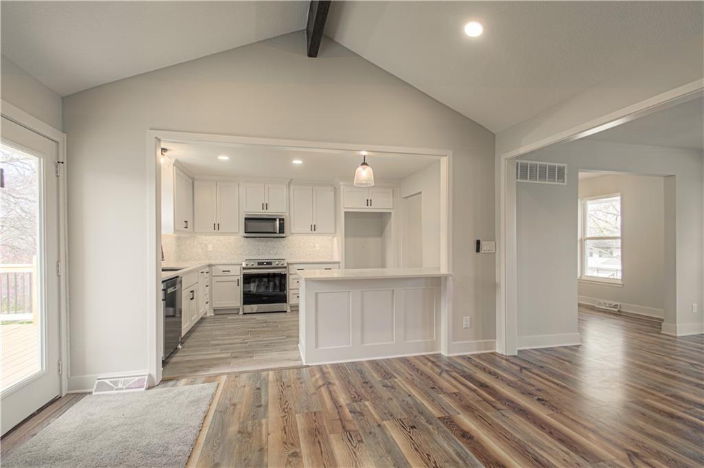 Move-in Ready! Welcome home to this updated Raised Ranch located in Unincorporated Platte County! This 3 bedroom home boasts Many updates that includes Fresh Paint inside and out, new deco flooring thru-out the home and new carpet in the bedrooms. With a brand new kitchen that includes gorgeous new custom cabinets and counter-tops with stylish backsplash and lighting to really give the space a modern look. Additional mentions include Vaulted ceilings that gives a very spacious main floor and a feature brick fireplace in the family room with a large traditional dining space that offers plenty of room for entertaining and family time! With two Brand new full bathrooms on the main including a private Master bath. The main floor is a stunner! Walk out to your brand new oversized back deck to enjoy your back yard which hosts a nice space for relaxing or a play area! Down to the lower level is a new finished Rec Room , A Second Brick fireplace , Laundry space and additional new half bath. With a Side entry & oversized 2 car garage , this home sits on an extra large corner lot. All electrical has been updated . This home offers a lot of space, style , updates and location! Located in The Park Hill School District and Unincorporated Platte County. Set up your showing today!