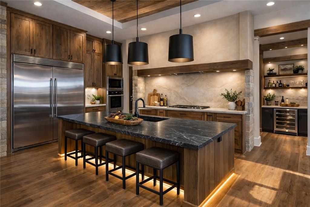 The Silverstone II by JW Thomas - Lot 17 in Walnut Reserve, the newest luxury community in Overland Park! Construction is beginning soon, with an estimated completion in 2027. This beautiful reverse 1.5-story home backs to extensive green space on a walk-out lot. Step inside to a spacious, light-filled home featuring designer finishes throughout. The gourmet kitchen is complete with a 10' island, built-in SS appliances, a prep kitchen, pantry, produce drawers, an oversized refrigerator, and a bar. Custom cabinetry provides both beauty and functionality throughout the space. The open-concept living area showcases stunning vaulted ceilings with beams and flows effortlessly to a covered back deck with a fireplace overlooking the backyard. The primary suite offers a private retreat with an expansive walk-in closet featuring built-in island and convenient pull-down racks. The spa-inspired primary bath includes a soaking tub that opens to the bedroom space with its own fireplace. The finished lower level is designed for both comfort and entertainment, featuring a built-in bar and e-fireplace. Step outside to the covered patio where you can unwind while overlooking the serene greenspace. 3 additional bedrooms and 2 full bathrooms with the option to convert one to a media room or home gym if you choose. Extra-spacious 3-car garage. The perfect blend of craftsmanship and serenity in the Blue Valley School District, with easy highway access. Don’t miss the opportunity to make it yours!