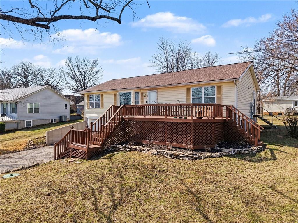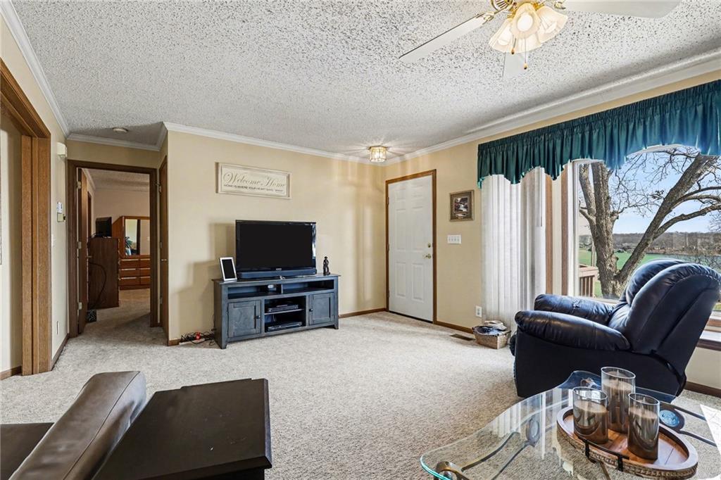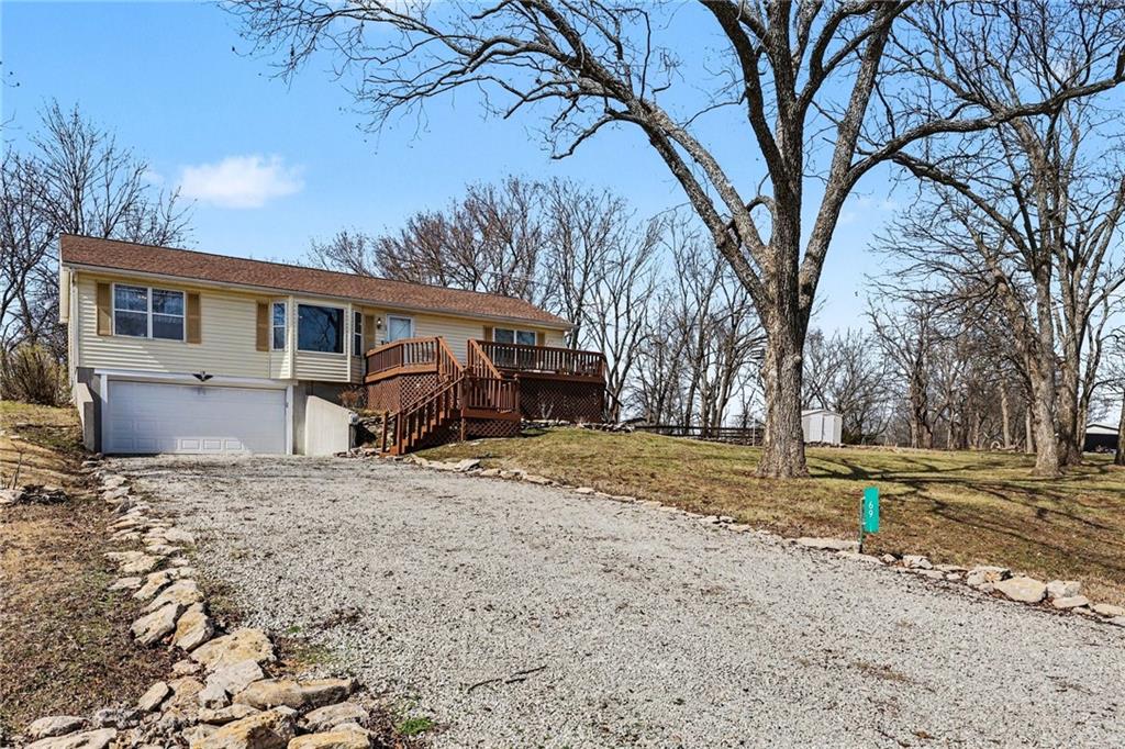 Wake up to beautiful lake views in this well-maintained 3-bedroom, 2-bath raised ranch located in the private gated community of Linn Valley Lakes. Offering 1,464 square feet of main-level living, the home also features a 2-car garage and unfinished basement below, providing excellent storage and future finishing potential. One of the most unique features of this property is the rare double lot, offering additional space and flexibility for the next owner. The second lot currently includes a separate driveway and storage shed and may provide potential for a future outbuilding, guest home, or investment opportunity (buyer to verify options with county and POA). Inside, the home offers a comfortable and functional layout with lake views from both the living room and the front deck, creating the perfect setting to relax and enjoy the scenery. The property has been well cared for over the years, while still allowing room for a new owner to add their own personal touches. Located near the dam and just minutes from the golf course, this home offers convenient access to the many amenities Linn Valley Lakes is known for, including boating, fishing, swimming, golf, and year-round recreational activities. Whether you're looking for a full-time residence, weekend getaway, or investment opportunity, this property offers a unique chance to enjoy lake life with room to grow.