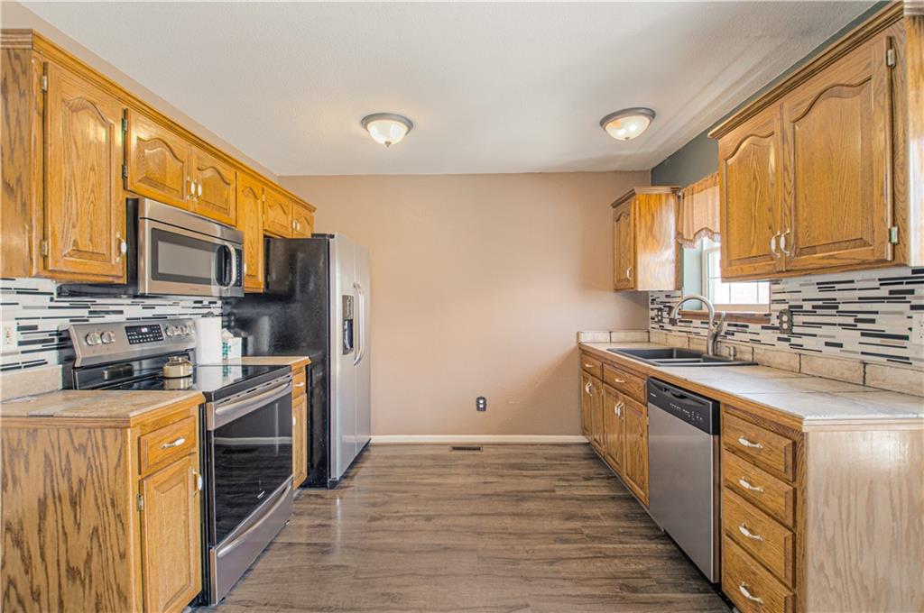 Cute split entry floor plan that offers a finished family room in the lower level or use it as a second owners suite! A fireplace in the great room, to use in those colder days, carpet throughout in the family room and bedrooms. Step out onto the deck and enjoy your new spacious fenced yard. The lower level carpet will be replaced along with the garage entry by the stairs. Lower level laundry and family room, office or use as a second owners suite.