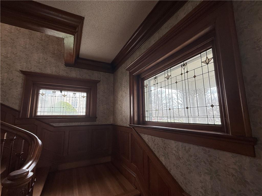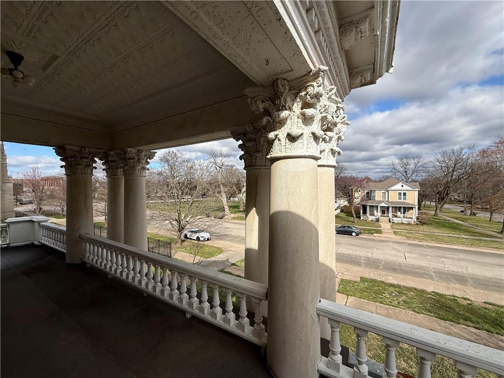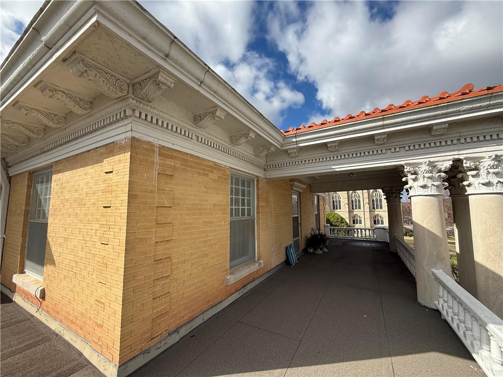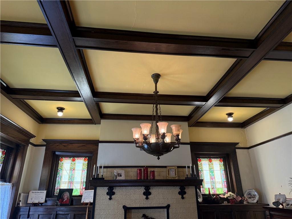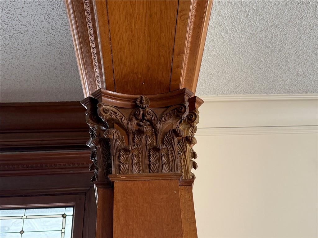 A Greek revival mansion built exclusively for Harry Ford Sinclair, founder of the Sinclair Oil Company. This residence with 12 rooms was built in 1906, at a cost of $25,000. It is defined by its huge front porch pillars plus its distinctive red tile roof and gold masonry. It has seven bedrooms of which two reside in the attic as guest bedrooms. The fifth bedroom on the second floor can serve as a nursery. The home features an impressive entryway with a grand staircase leading to the second floor. The staircase also has shorter than usual risers to accommodate Mr. Sinclair’s limp from a hunting accident. Pay special attention to the first floor and its beautiful Birdseye Maple Woodwork with hand-carved features on the pillars and staircase. Other rooms on the first floor include a large living room, a dining room, a library/study and a kitchen with an attached laundry room. Two gorgeous fireplaces are located on the first floor (one in the living room and one in the Library/Study that also features pocket doors and a beamed ceiling). The Library/Study also has a half-bath and walks out to the large porch on the West side of the house. The second floor consists of four to five bedrooms with the Master bedroom at the front of the house that includes a full private bathroom. This bedroom also opens to a large balcony that extends the full length of the front porch and side porch on the South side. Another full bathroom is located on the second floor to serve the other bedrooms. The walkup attic is unfinished in the main part and has a nonfunctional bath that could be brought back to life. There is also a rainwater catcher that could be functional again. The basement houses a very cool poker/recreation room with beamed ceilings, tiled floor, fireplace and half bath as well. Beautiful landscaping with trees and flowers and its location on a quiet street near churches, the public library and downtown businesses make it the ideal place to call home!