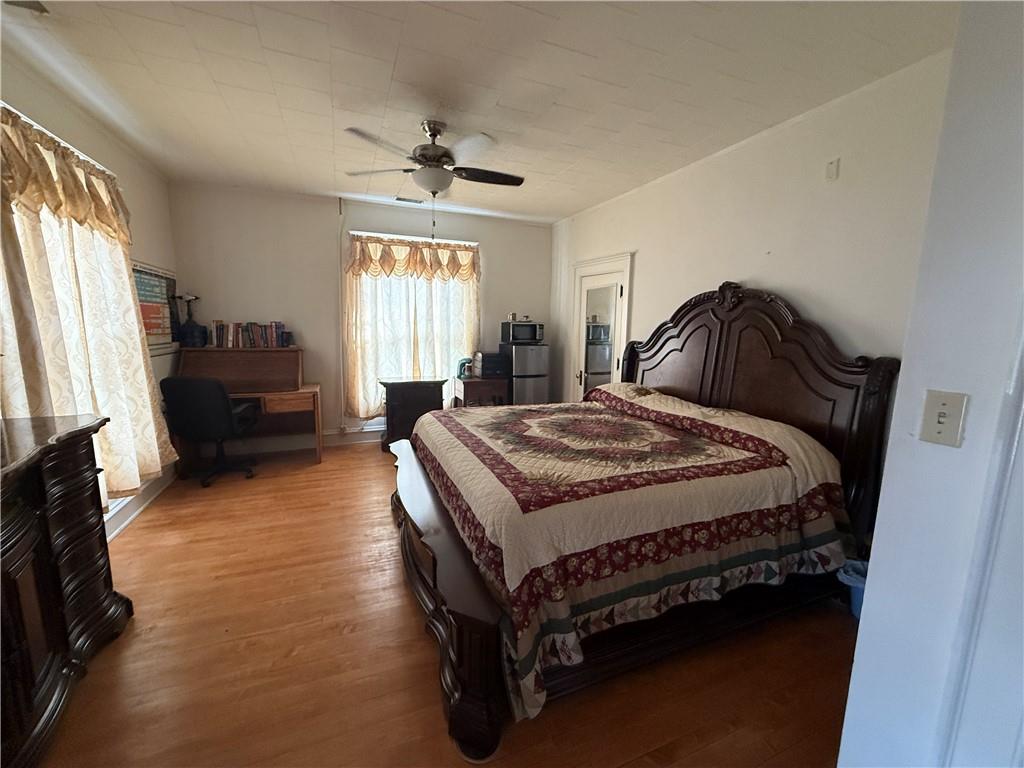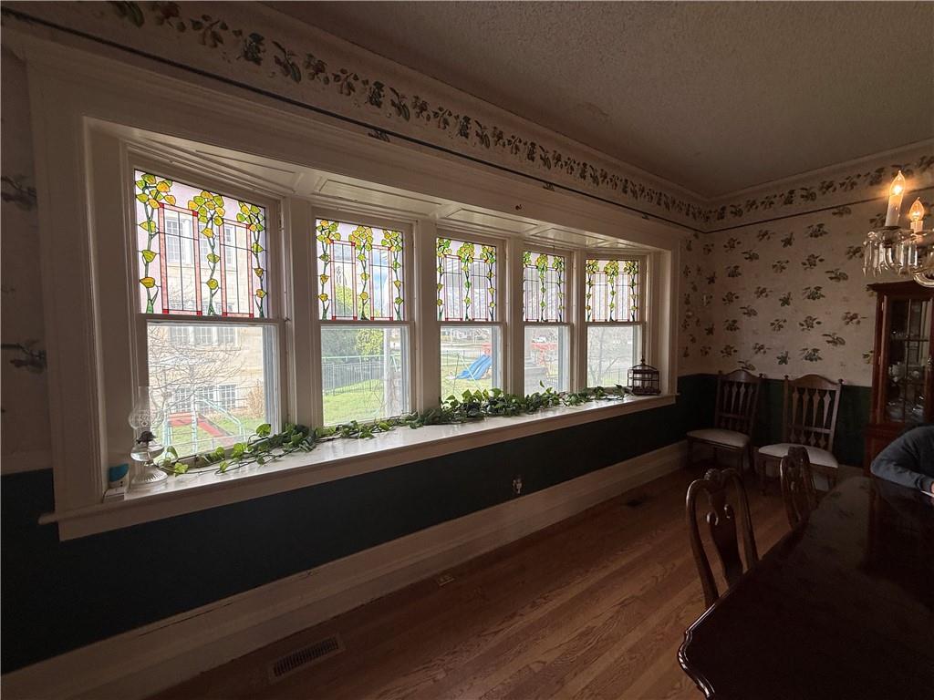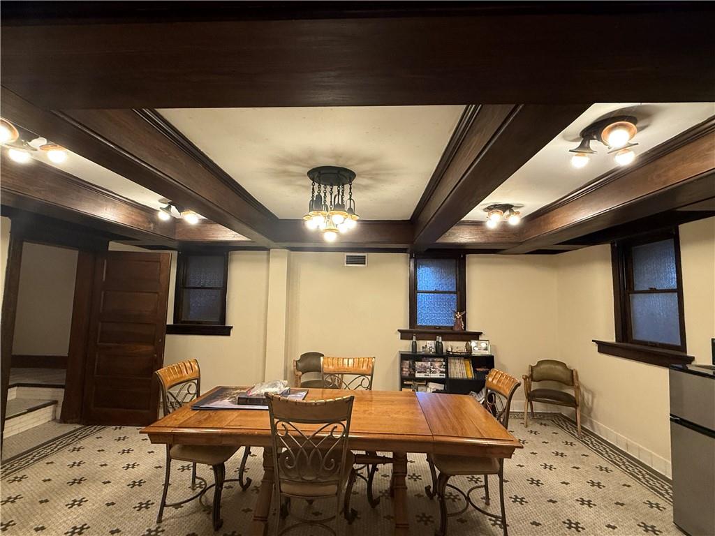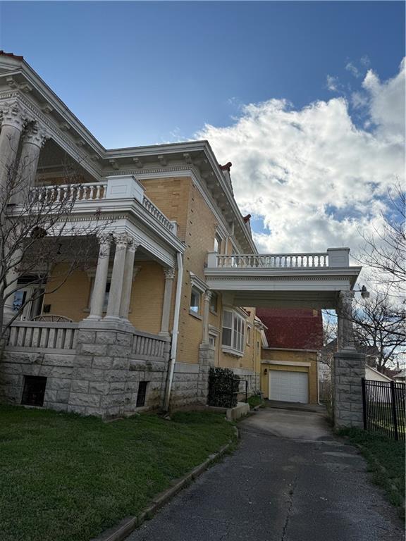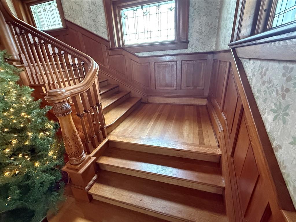 A Greek revival mansion built exclusively for Harry Ford Sinclair, founder of the Sinclair Oil Company. This residence with 12 rooms was built in 1906, at a cost of $25,000. It is defined by its huge front porch pillars plus its distinctive red tile roof and gold masonry. It has seven bedrooms of which two reside in the attic as guest bedrooms. The fifth bedroom on the second floor can serve as a nursery. The home features an impressive entryway with a grand staircase leading to the second floor. The staircase also has shorter than usual risers to accommodate Mr. Sinclair’s limp from a hunting accident. Pay special attention to the first floor and its beautiful Birdseye Maple Woodwork with hand-carved features on the pillars and staircase. Other rooms on the first floor include a large living room, a dining room, a library/study and a kitchen with an attached laundry room. Two gorgeous fireplaces are located on the first floor (one in the living room and one in the Library/Study that also features pocket doors and a beamed ceiling). The Library/Study also has a half-bath and walks out to the large porch on the West side of the house. The second floor consists of four to five bedrooms with the Master bedroom at the front of the house that includes a full private bathroom. This bedroom also opens to a large balcony that extends the full length of the front porch and side porch on the South side. Another full bathroom is located on the second floor to serve the other bedrooms. The walkup attic is unfinished in the main part and has a nonfunctional bath that could be brought back to life. There is also a rainwater catcher that could be functional again. The basement houses a very cool poker/recreation room with beamed ceilings, tiled floor, fireplace and half bath as well. Beautiful landscaping with trees and flowers and its location on a quiet street near churches, the public library and downtown businesses make it the ideal place to call home!