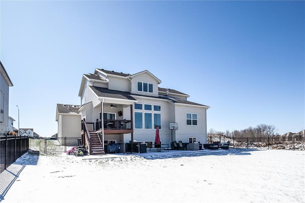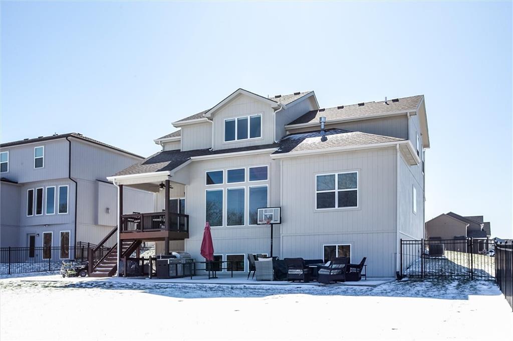 Remarks & Directions Better than new home, nestled within the highly sought-after Liberty School District, this three-year-old masterpiece offers the pristine feel of new construction with the thoughtful upgrades of a custom home. This spacious 1.5-story layout is designed for effortless living, beginning with a bright, open floor plan that serves as the heart of the home. The gourmet kitchen is a showstopper, featuring sleek quartz countertops, a massive island, premium stainless steel appliances, and a large walk-in pantry. Whether you're hosting a holiday dinner or working from home, the versatile front room offers the perfect space for either a formal dining area or a private home office. The main-floor primary suite serves as a true sanctuary, boasting an expansive ensuite and a massive walk-in closet with the ultimate convenience: its own dedicated laundry setup. As you head upstairs, you’ll discover a versatile loft space perfect for a media room or playroom, along with three additional spacious bedrooms. One pair of bedrooms shares a clever Jack-and-Jill bath, while the third enjoys the privacy of its own ensuite. To make daily life even easier, the second floor also features its own laundry room, ending the era of hauling baskets up and down the stairs. The beauty of this home extends well beyond its walls. Step outside to a peaceful covered deck—the perfect spot for your morning coffee while overlooking the lush, quiet greenspace that borders the property. Below, an oversized patio provides ample room for entertaining, all enclosed by a sophisticated iron fence that maintains your view of nature. This is more than just a house; it’s a retreat that offers the perfect balance of modern luxury and natural serenity.