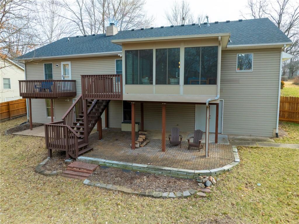 Tucked away in Old Southwest Columbia, just one mile from the MKT Trailhead, this spacious 5-bedroom, 3-bathroom single-family home offers the perfect balance of privacy, nature, and convenience. Surrounded by mature trees and set behind a privacy fence, the wooded backyard creates a peaceful setting that feels like country living while still being in a walkable, established neighborhood. Inside, the open-concept floor plan seamlessly connects the kitchen, dining, and living areas—ideal for everyday living and entertaining. The living room features a cozy wood-burning fireplace, perfect for taking the chill off during cooler months. A bright sunroom overlooks the wooded backyard, where you can hear the gentle burbling of a nearby creek, and opens directly onto the deck for easy indoor-outdoor living. Downstairs, the fully finished basement provides even more living space and walks out to a shaded lower-level patio, creating another relaxing spot to unwind on sunny days. The primary suite is a private retreat with balcony access, a large walk-in closet, and an ensuite bath with double vanity and walk-in shower. Additional highlights include: • 5 bedrooms / 3 bathrooms • Full finished basement with abundant living space • 2-car attached garage • Beautifully landscaped yard • Multiple outdoor living areas (deck, patio, balcony) Currently operating as a short-term rental, this property can also be sold fully furnished, offering an excellent opportunity for investors or buyers seeking a turnkey home. With its space, privacy, mature trees, and proximity to the trail, this home offers a rare opportunity to enjoy nature while being just minutes from everything Columbia has to offer.