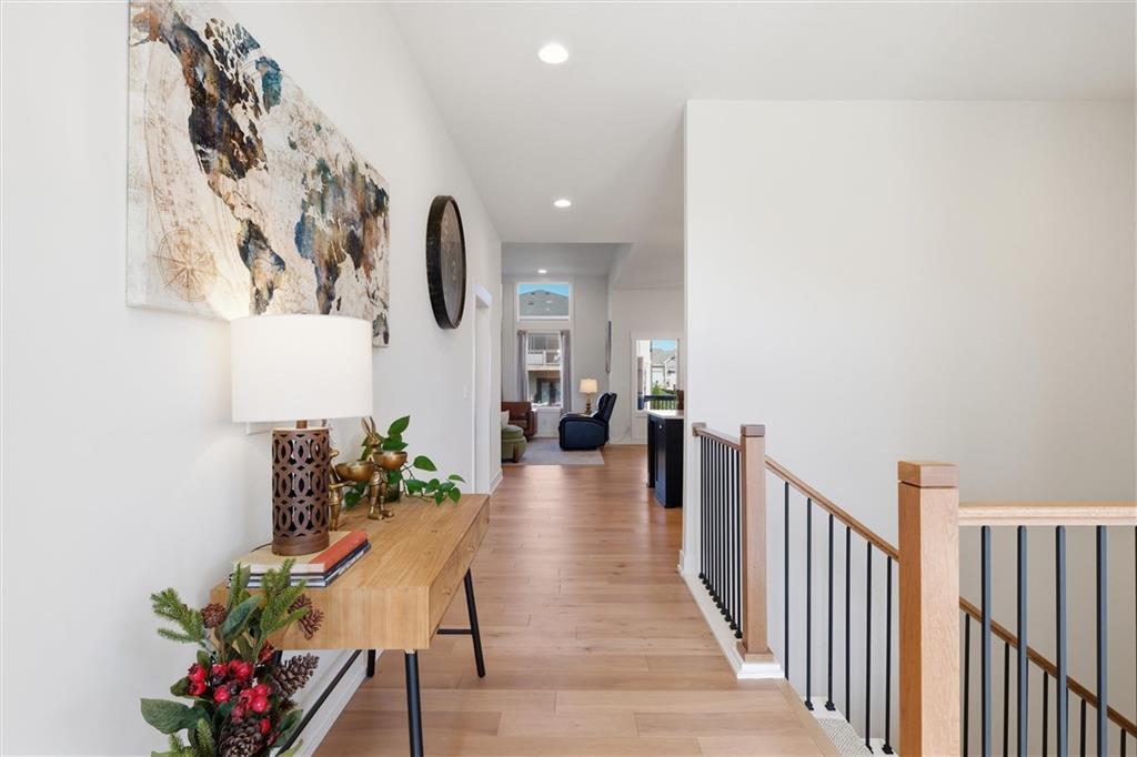This home is better than new and move-in ready! Save time and money with this already upgraded home featuring an open floor plan for easy entertaining. The vaulted ceilings throughout the main living spaces make it feel spacious, and the hardwoods make it feel warm. Kitchen is beautiful with open shelving to showcase your decor or favorite dishes, a custom vent hood, a large island with seating, granite countertops. The walk-in pantry can fit all your bulk orders PLUS it has electrical to hide your countertop appliances. Primary bedroom is on the main floor with a massive closet that opens to the laundry room for the ultimate convenience. Dedicated office with closet on the main floor could make a great play room, sitting room or hobby room. Completely finished basement with 3 additional bedrooms and a family/rec room that walks out to the patio, great for enjoying an evening outside by the fire pit.