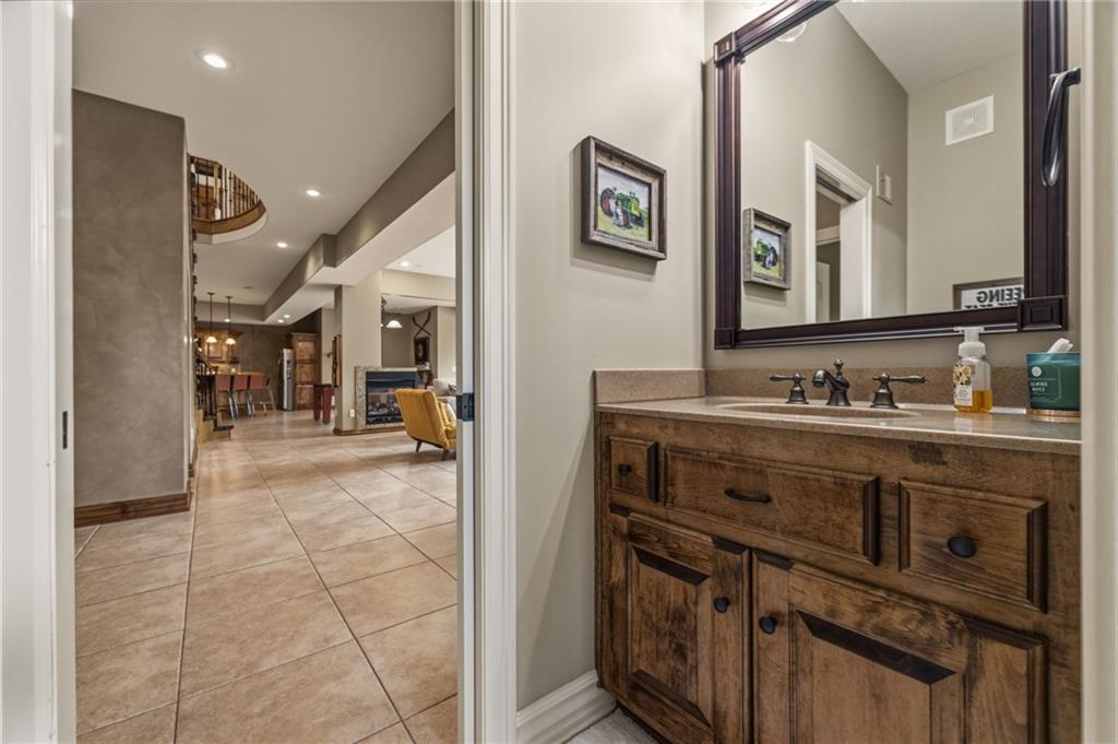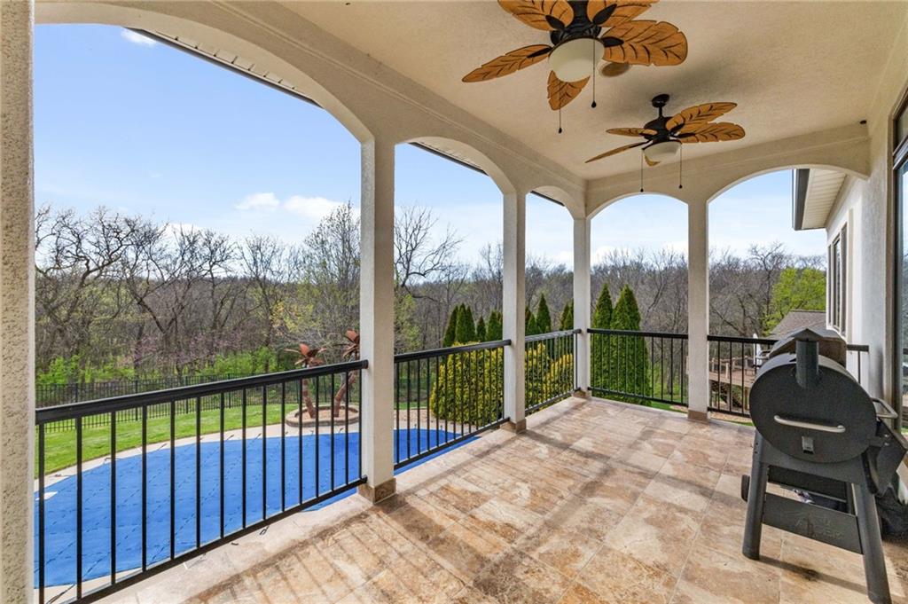 From the moment you approach, this stunning reverse 1.5-story masterpiece commands attention. Grand steel double doors open to over 5,000 square feet of meticulously designed living space, where every detail has been crafted for those who expect nothing but the best.Entertain in style on the main level, where an open-concept layout flows effortlessly from a formal dining room and private office to a breathtaking great room anchored by a gas fireplace. Walls of windows frame your backyard oasis, blurring the line between indoor elegance and outdoor paradise. The chef's kitchen is nothing short of spectacular — featuring stainless steel appliances, a double built-in oven, a 5-burner gas cooktop, expansive granite countertops, a oversized island, and a walk-in pantry. Whether you're hosting an intimate dinner or a grand celebration, this kitchen delivers. Your private retreat awaits in the luxurious main-level master suite, overlooking the sparkling saltwater pool and endless forest beyond. The spa-inspired en suite boasts double vanities, granite countertops, custom cabinetry, a soaking tub, oversized tile shower, and a private water closet. The massive walk-in closet — complete with a center jewelry island — is a statement all its own. The basement is an entertainer's crown jewel. Descend the showstopping central staircase to a world-class entertainment level featuring a full bar, a dedicated theater room with projector and surround sound, a wine room, and a bonus room ideal for a private gym. Step outside into your personal paradise. The backyard is an absolute showstopper — a resort-style saltwater pool, hot tub, and lush professional landscaping, all backed by a wall of pristine, private forest. No rear neighbors. Just nature, serenity, and the sounds of wildlife. Additional highlights include a four-seasons sunroom, Oversized three car garage and fenced in yard. This is not just a home — it's an experience. Schedule your private showing today.