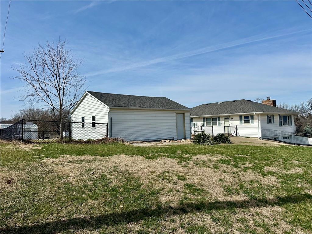 This 3-bedroom, 2 bathroom ranch-style home offers comfort, space, and plenty of natural light throughout. The home features spacious rooms and an open, inviting layout, perfect for everyday living and entertaining. The kitchen comes fully equipped with appliances included, making move-in easy. Relax in the open, yet cozy living area with a wood burning fireplace, ideal for cool evenings. This home offers excellent storage and future potential with basement space ready for your personal touch to add additional living area. Car enthusiasts, hobbyists, or those needing extra storage will love the additional detached 2 car garage and separate gardening shed/hobby shop, all steps from the back door! Step outside to enjoy the fenced backyard on the large corner lot, providing plenty of room for outdoor activities, pets, or gardening. In addition to having a permanent home generator, a new roof and new HVAC system give peace of mind for years to come. This property combines space, functionality, and future potential. Don't miss out on this rare offering.
