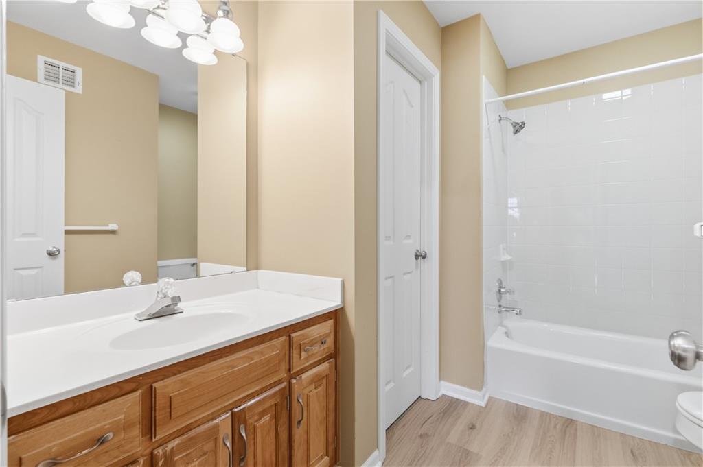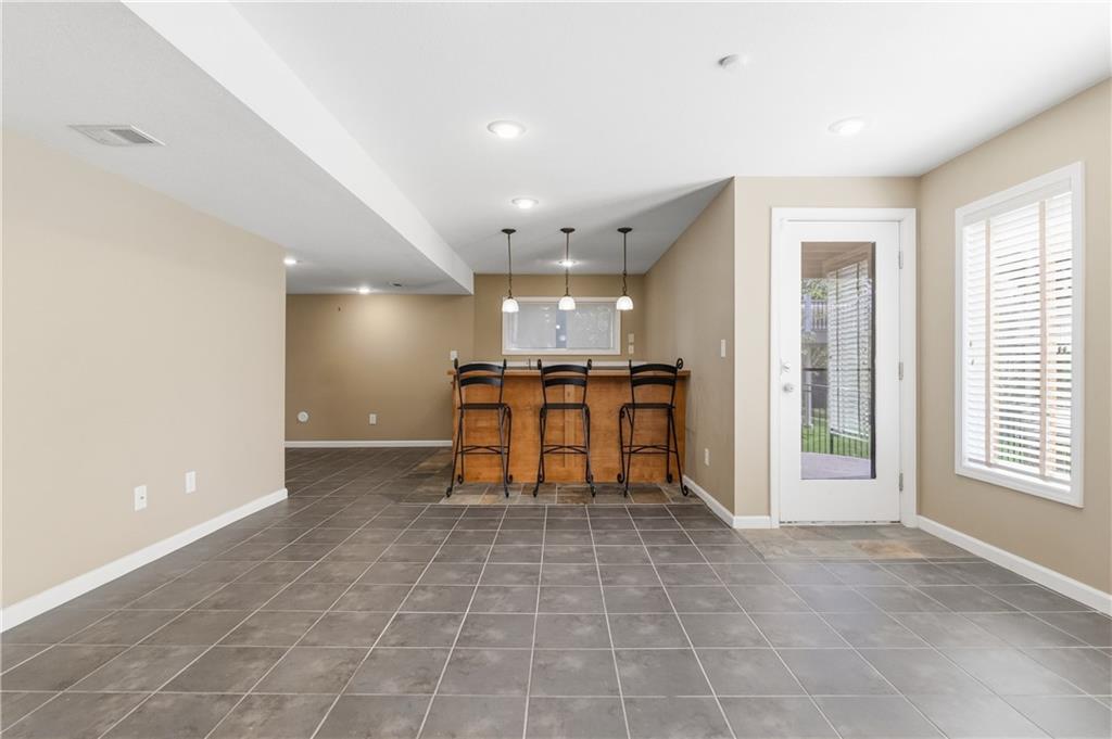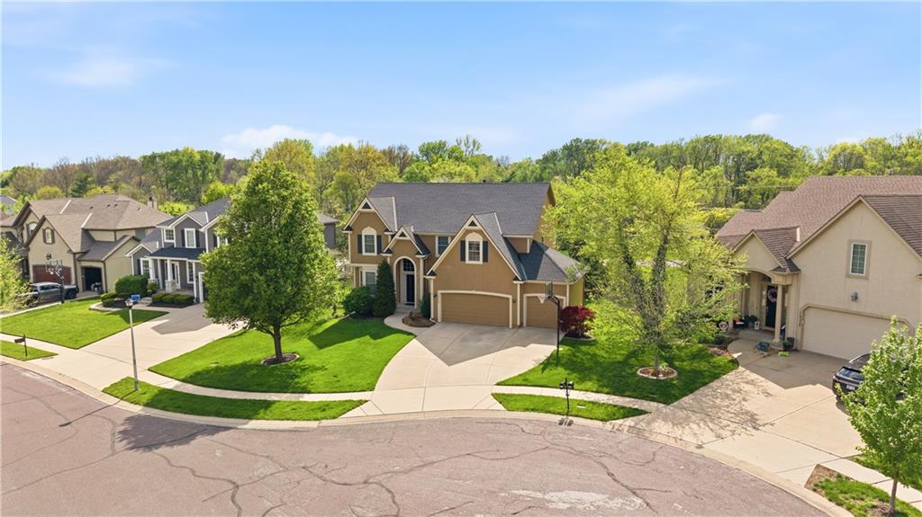 This meticulously maintained home is a great value in this sought after neighborhood! Welcoming entry with curved staircase. Home features hardwood floors in entrance, dining room, kitchen and breakfast room. The spacious great room offers built ins and a cozy gas fireplace. Kitchen boasts painted cabinets, SS appliances and great flow for everyday living. The primary suite features a sitting room, walk in closet, walk in shower and a bath with a jacuzzi tub. Secondary bedrooms offer large walk in closets. Convenient second floor laundry. The W/O lower level is filled with natural light and includes a wet bar and office space. Enjoy treed backyard with a deck and stamped concrete patio. Neighborhood amenities include walking trails, stocked pond, play area, and community pool, all just minutes from the elementary and middle schools. Home is surrounded by a 400 acre nature preserve with lakes, paved trails and abundant wildlife. Located in award winning Blue Valley Schools and convenient to shopping, dining, parks and quick highway access.