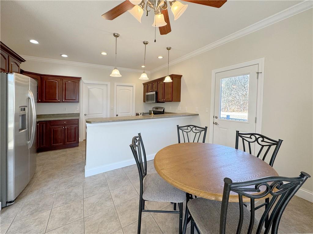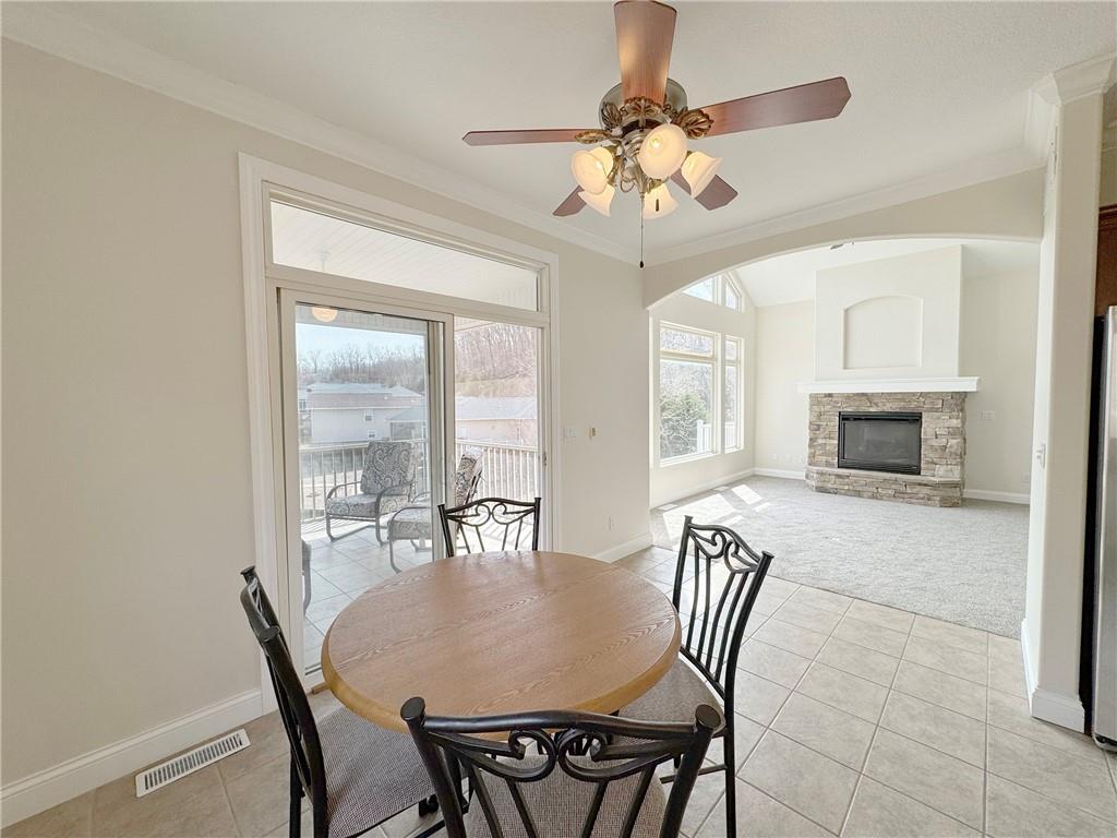 Luxury lakefront living in quiet cove on 26mm! Relax across multiple outdoor spaces, w/ gorgeous main channel views—perfect for morning coffee, sunset cocktails, & watching Margaritaville's July 4th fireworks. Just minutes from the lake’s best waterfront restaurants & attractions, just hop on the boat & let the vacation begin. Inside, this stunning open-concept retreat welcomes you with a grand hearth room featuring cathedral ceilings, gas fireplace, & dramatic windows framing breathtaking water views. Kitchen offers stainless steel appliances, breakfast bar, + sunny breakfast nook that opens to the screened-in porch overlooking the lake. The main-floor primary suite is a private sanctuary w/ its own deck for even more outdoor enjoyment and boasts coffered ceilings, large walk-in closet, spa-inspired bath w/ double sinks + jetted tub & walk-in shower. Walk-out lower level features a spacious lakeside rec room, 3 more bedrooms including a primary-style suite w/ full bath & supersized walk-in closet. Fresh Paint. New Carpet. 12x30 dock, lift + Monark Seville 24' pontoon w/150 Yamaha outboard. Boat Ramp. Paved streets- NO GRAVEL. HOA covers water/sewer. Underground utilities. Level parking 4+ & attached garage. No STR allowed.