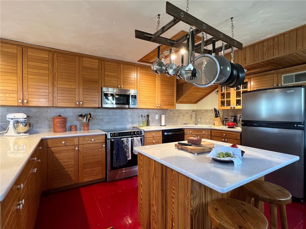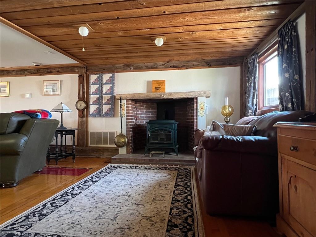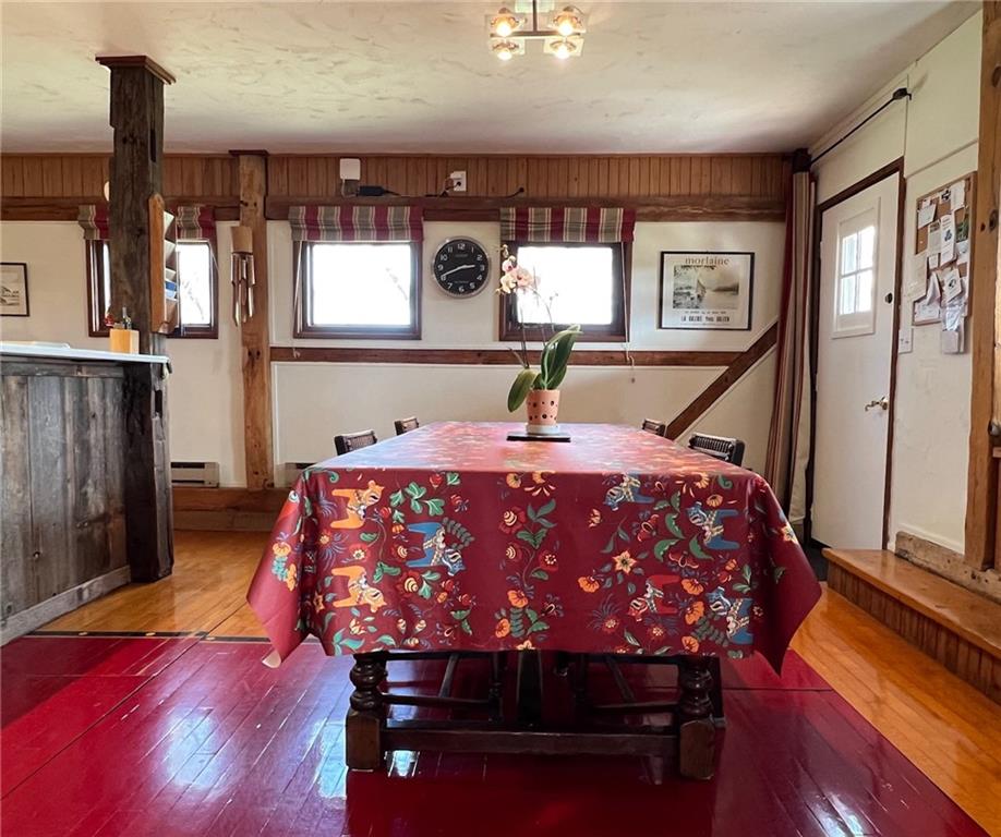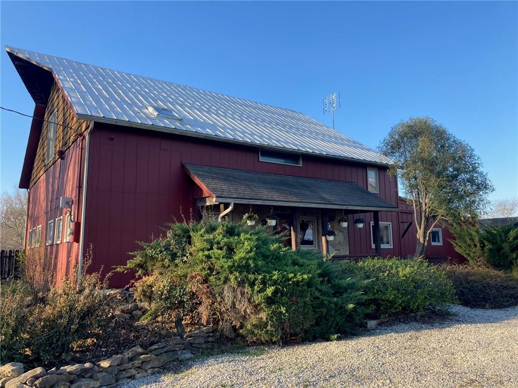 Located 8 miles south of Lawrence in the unincorporated town Pleasant Grove. The unique barn home conversion resides on one of the highest plateaus in Douglas County on 11 acres. This Gable Barn with a hay mow was part of an early European settlement in the 1870s. For approximately 100 years it served as a barn for a productive dairy farm. In the 1970s it was converted into a home. The Brown family had the opportunity to purchase the original basketball flooring from Allen Fieldhouse. They repurposed all the flooring except the K piece, installing it in throughout the home. Much of the 3,600 square feet contains this flooring. Just think, famous basketball player played on this floor! The current owners have enjoyed being the stewards for 20 years, improving the property with recent bathroom and kitchen renovations, new double pane windows and a high efficiency HVAC system. The property contains a mix of green space and old growth timber to the west. The compound still retains a grain silo, old windmill pump, barn, 1950s storage building (could be an art studio or office) and a newer one car garage. This is a magical place. It gushes with a rural Kansas vibe and rich KU basketball history. Who’s next?