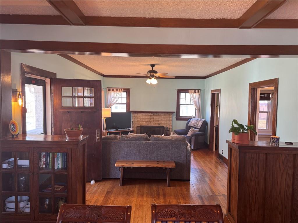 This charming 1.5-story home offers classic character and modern convenience. Four bedrooms with walk-in closets and two full baths provide flexible living space — ideal for families or those who love hosting. Original beautiful hardwood floors along with built-in bookcases and window seats. Warm wood floors flow through the main living areas, creating an inviting, timeless atmosphere. The home sits on a desirable corner lot and features a welcoming front porch perfect for morning coffee or evening relaxing. A dedicated laundry room adds practicality, and the attached one-car garage offers secure parking and extra storage. Full basement for storage as well. Well-maintained and full of curb appeal, this Paola home blends traditional charm with everyday functionality. Bring us your offer!