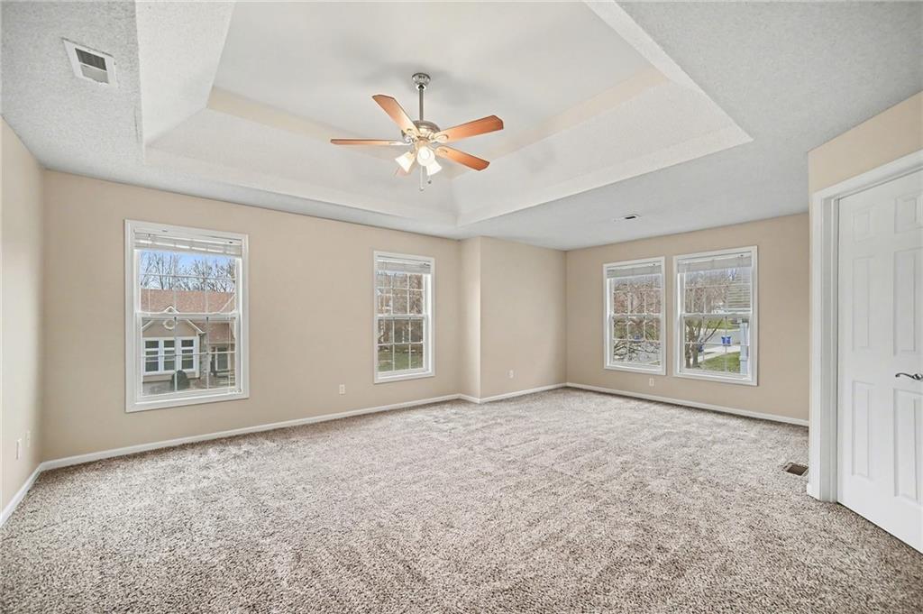 Four-bedroom, 3.5-bathroom home in Shawnee’s desirable Wedgewood Huntington neighborhood, featuring a functional layout and a finished basement! This residence offers a classic main-level floor plan with a formal dining room and a comfortable living room highlighted by a cozy fireplace that opens to the breakfast area and a kitchen that is designed for efficiency. All bedrooms are located on the second floor, including a grand primary suite with coffered ceiling and an expansive ensuite. The primary bath features dual sinks, a jetted tub, and a separate standing shower, alongside a large walk-in closet. The fully finished basement serves as a premier entertainment space, complete with a built-in bar area and a full bathroom. An additional unfinished section provides ample room for seasonal storage. Ideally located in the heart of Shawnee, this home is just minutes from shopping at Shawnee Station and the various amenities of the Shawnee Mission area. Commuters will appreciate the quick access to I-435 and Shawnee Mission Parkway, ensuring a smooth drive to regional employers and downtown Kansas City. Schedule your private showing today!