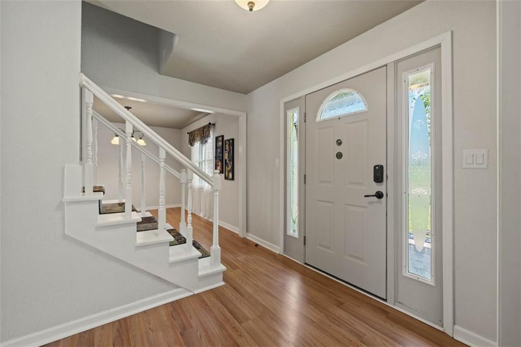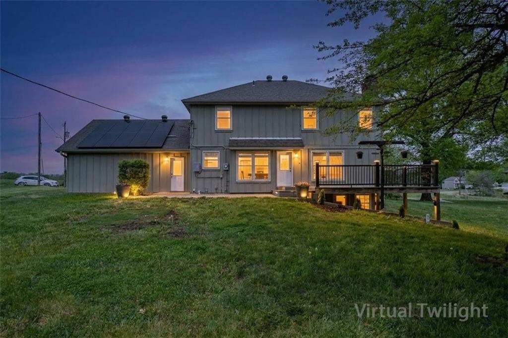 Welcome to this alluring move in ready 4 bedroom – 2.5 bath home; sitting on an expansive .61 acre lot. Outside there is plenty of room to relax, garden, or entertain without the restrictions of a homeowners association. Recently updated landscaping greats you at the front door. The radiant heated main floor provides a working wood burning fire place turning the living room into a space of ambiance. An open concept leads to the peaceful kitchen view overlooking the expansive back yard and a 16 X 20 maintenance free Trex deck with guardrail. All kitchen appliances stay with the home. A gas stove is hard to find and this home comes with one! The enclosed main floor laundry washer and dryer stay as well. A .5 bath is conveniently located across the hall. The dining space and den/office round out the main floor. Up the stairs to the second floor is where you will find the master bedroom/bath, second full bath and 3 additional rooms. Wake up in the morning and step onto a heated electric floor in the master bedroom and master bath adding a cozy feel all year long. The recirculating hot water provides the spacious second floor bathroom and shower with hot water in seconds. Double pane windows are installed throughout the home for energy efficiency. The solar array makes this home an eco-friendly residence harnessing renewable energy. The solar panels on the roof stay with the home. There is no outstanding contract on the solar array. This home offers a 30 amp Tesla EV charging station. Feel safe and secure knowing the doorbell/camera system is installed and staying. A two car garage with a two lane driveway offers additional parking spaces. The basement below serves as storage space and a storm shelter. This home sits in Louisburg where you find small-town charm with the modern convenience of being close to the city.