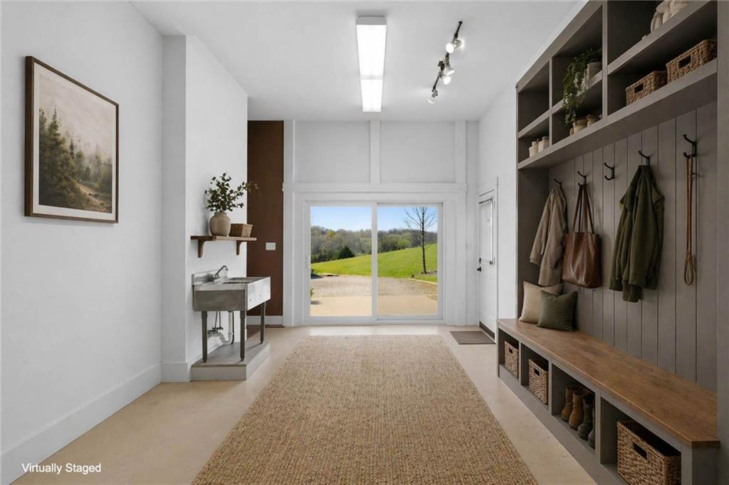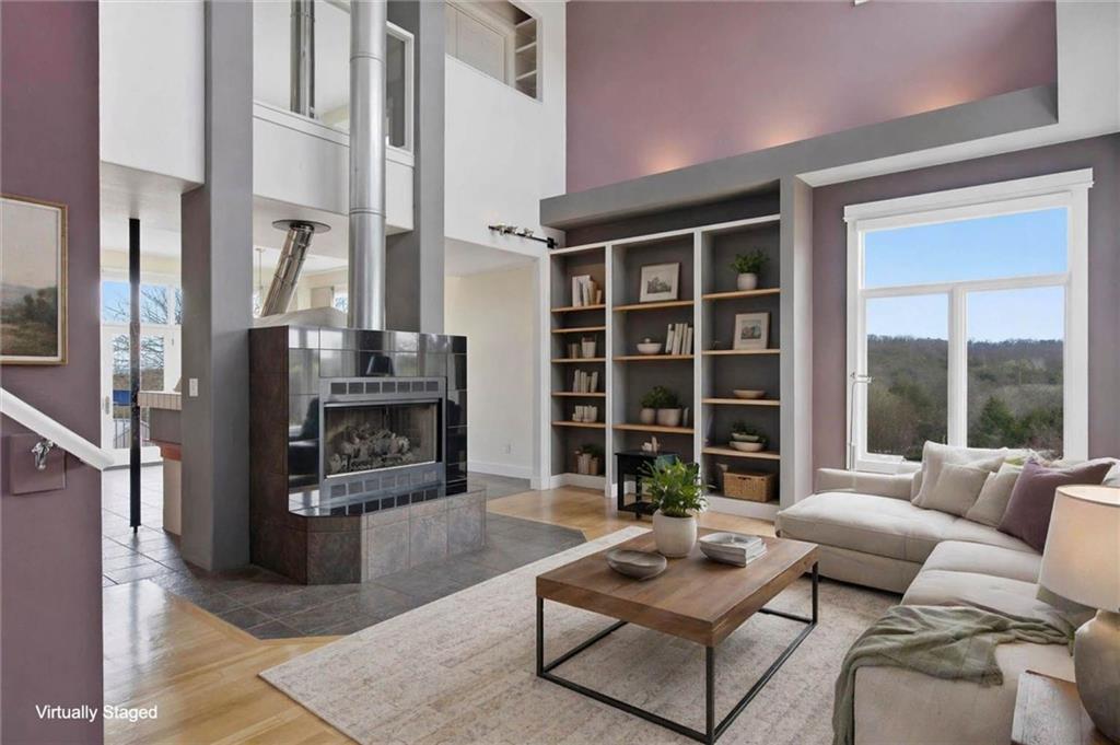 Set just north of Lawrence in the scenic Twin Ridge Heights West rural subdivision, this extraordinary 5.6-acre property offers a rare opportunity to own the personal residence and creative sanctuary of beloved Lawrence artist Louis Copt and his wife, Phyllis. Designed and built in 2002, the home reflects a lifetime devoted to art, craftsmanship, and intentional living. Inspired by the architectural principles of Frank Lloyd Wright, this vertical prairie-style home features expansive overhangs, strong lines, and a seamless connection to the surrounding landscape. Inside, the dramatic living room rises to 20-foot ceilings, anchored by a striking fireplace that uniquely backs to a wood-fired pizza oven imported from Italy—blending function, artistry, and gathering space into one unforgettable focal point. The home itself serves as a canvas, with artistic contributions from local talents Barry Fitzgerald and Kate Dineen woven throughout. Natural light pours into every space, enhancing both the architecture and the home’s gallery-like quality. Currently configured as a 2-bedroom, 2.5-bath residence, the main level includes a large open studio where Louis created much of his work. This space offers flexibility and can easily be converted to an additional bedroom and bathroom. Thoughtfully maintained, the home features a tankless water heater, a new roof in 2022, and a new septic tank installed in 2023. Outdoors, enjoy a peaceful setting with a sauna garden and sauna, storage shed, gardening shed, vegetable garden, and native landscaping. An additional 5-acre parcel directly north is also available (MLS #2605277), offering expansion potential or added privacy. A truly rare offering - where architecture, art, and place come together in a way that is nearly impossible to replicate. Disclaimer: Sight unseen offers may be accepted by the Seller. The Showing Begin Date is subject to change.