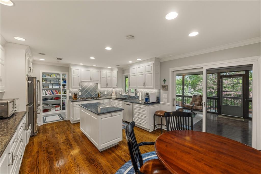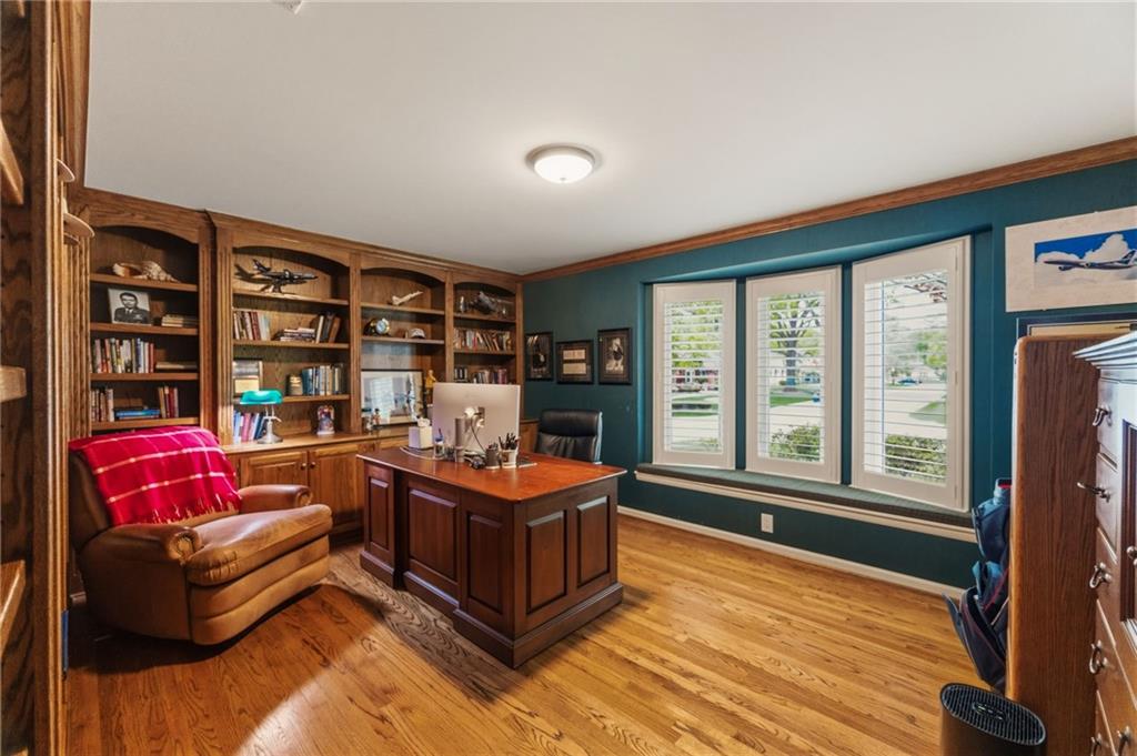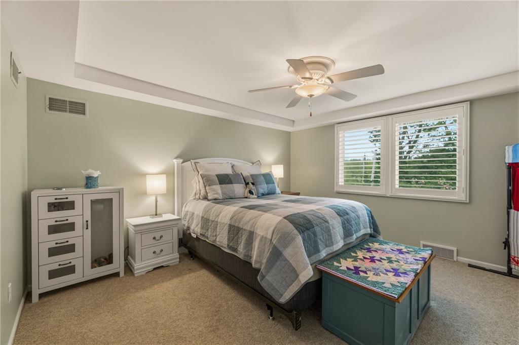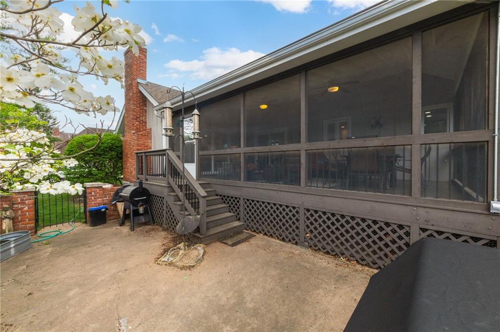 Welcome home to this beautifully updated 1.5-story in a prime Leawood location offering the perfect blend of luxury, comfort, and low-maintenance living. Nestled in a highly sought-after limited maintenance-provided community, this home is truly move-in ready with thoughtful upgrades throughout. Step inside to find fresh interior paint and refinished hardwood floors, and plantation shutters throughout that create a warm, inviting feel from the moment you enter. The ideal 1.5-story floor plan offers convenient main-level living. The large kitchen with expansive counter space and island also boasts a huge walk in pantry/laundry room Another highlight-a stunning primary suite featuring 2 spacious walk-in closets and a spa-inspired, fully remodeled bathroom with dual vanities and a custom walk-in shower with multiple shower heads, all heated floors ,and attention to all detail—designed for everyday luxury. You’ll appreciate the additional 2 beautifully remodeled bathrooms, all completed with high-end finishes that bring a modern, elevated touch to the home. Enjoy peace of mind with the addition of a whole house generator, an increasingly rare and valuable upgrade, along with an additional lawn sprinkler system in addition to the HOA system to ensure your lawn is picture perfect. One of the true showstoppers is the gorgeous screened-in porch off the expansive kitchen- with premium Brazillian wood flooring, plenty of space, it's perfect for relaxing or entertaining while taking in the serene, picturesque views. Located just minutes from award-winning schools, parks, shopping, dining, and major highways, this home offers both convenience and lifestyle. Opportunities like this don’t come along often in such a coveted Leawood community—schedule your showing today!