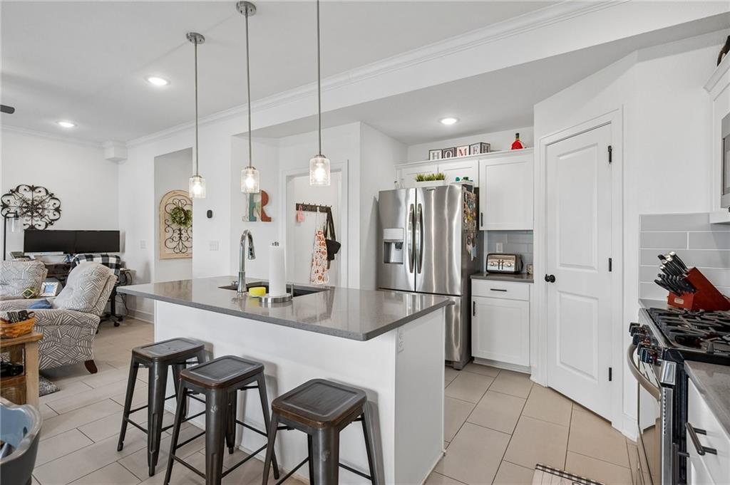 Built in 2020 and designed for effortless, low-maintenance living, this beautifully appointed townhome blends modern style with everyday convenience. The main level features an open-concept layout perfect for entertaining, with a spacious living area flowing seamlessly into the kitchen—complete with quartz countertops, a large island, gas range, walk-in pantry, and stylish trim accents. Step out onto the back deck for easy indoor-outdoor living. A statement stairwell with designer accent paneling paired with modern horizontal railing adds architectural interest and sets the tone as you move to the upper level. Upstairs, you’ll find all three bedrooms, including a serene primary suite featuring custom geometric wall detailing, a large walk-in closet, and a private en-suite bath with dual vanities and elevated finishes. Two additional bedrooms share a well-appointed hall bath, and bedroom-level laundry adds to the home’s thoughtful functionality. Additional highlights include tile flooring on the main level, a convenient powder bath, and a 2-car garage. Enjoy true lock-and-leave living in this maintenance-provided community, where the HOA covers lawn care, roof, trash, and snow removal. Residents also have access to a private, gated pool—perfect for relaxing all summer long. Ideally located in the highly sought-after Park Hill School District, with Park Hill South High School, and just *outside KCMO’s 1% earnings tax area.* Enjoy quick access to KCI Airport, The Legends, Zona Rosa, Downtown Parkville, and highway 435 —this home offers the perfect balance of comfort, convenience, and lifestyle. *all room dimensions and measurements approximate*