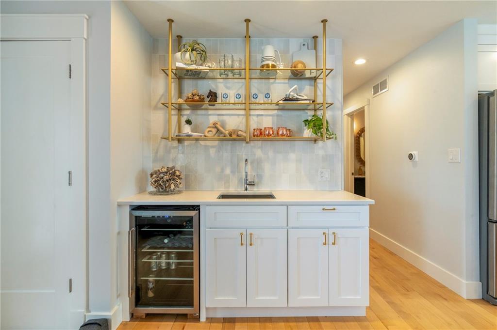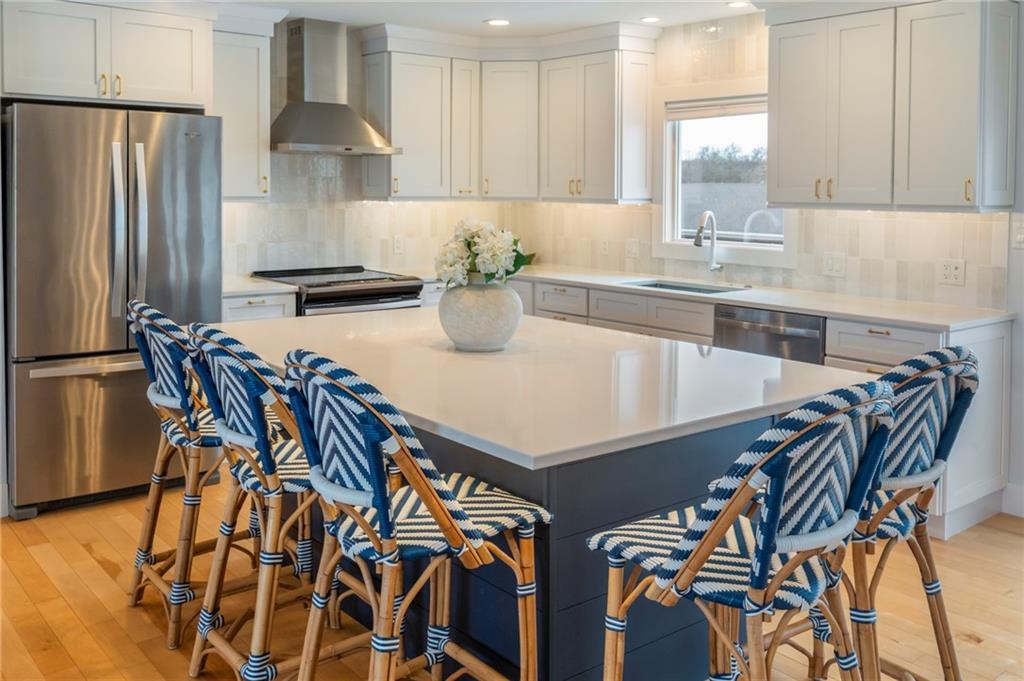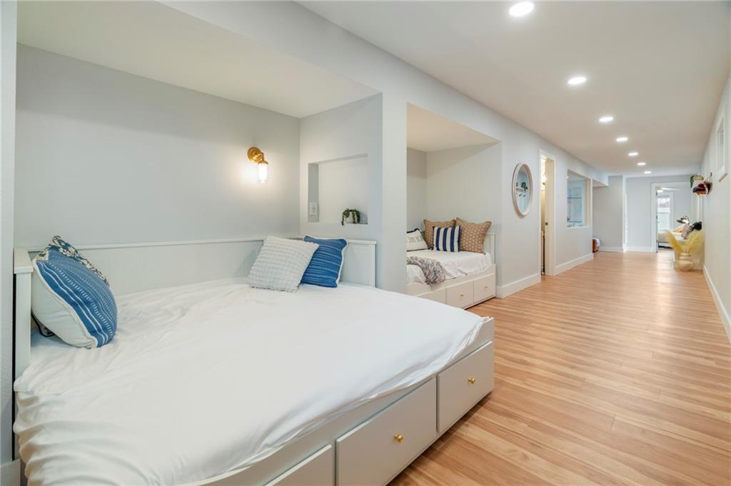 Modern, fun, and Turn-Key, this lakefront retreat is ready for you to enjoy! This beautifully remodeled 5-bedroom waterfront home is designed for ultimate summer living, complete with a dock and pavilion perfect for soaking up the sun. Move-in ready and thoughtfully designed for comfort and convenience, the home features two kitchens, two laundry areas (one on each level), and five spacious bedrooms. Step outside and enjoy the spacious deck, beautiful sidewalk down to a concrete patio right at the water’s edge, creating the perfect setting for relaxing or entertaining. Inside, you’ll love the bright, refreshing finishes that truly bring lake life to life. The main level showcases a soothing color palette, hardwood floors, and updates throughout, including new HVAC, plumbing, electrical, siding, and windows, this home has been remodeled down to the studs. The kitchen features stunning quartz countertops, stainless steel appliances including a dishwasher, and a stylish wet bar. The lower level is just as impressive, offering a second kitchen with dishwasher, eat-in dining area, 2 bedrooms, and two twin-to-king trundle daybeds. Additional highlights include built-in cubbies, banquette seating, and beautifully tiled bathrooms. Conveniently located near the main entrance and just moments from the clubhouse, salt water pool, marina, and beach, you’ll love having summer fun right at your fingertips—including food trucks within easy reach. Lake life is calling, don’t miss your chance to make it yours! The yard is in the process of being seeded and reworked due to newly installed lawn irrigation and recent improvements.