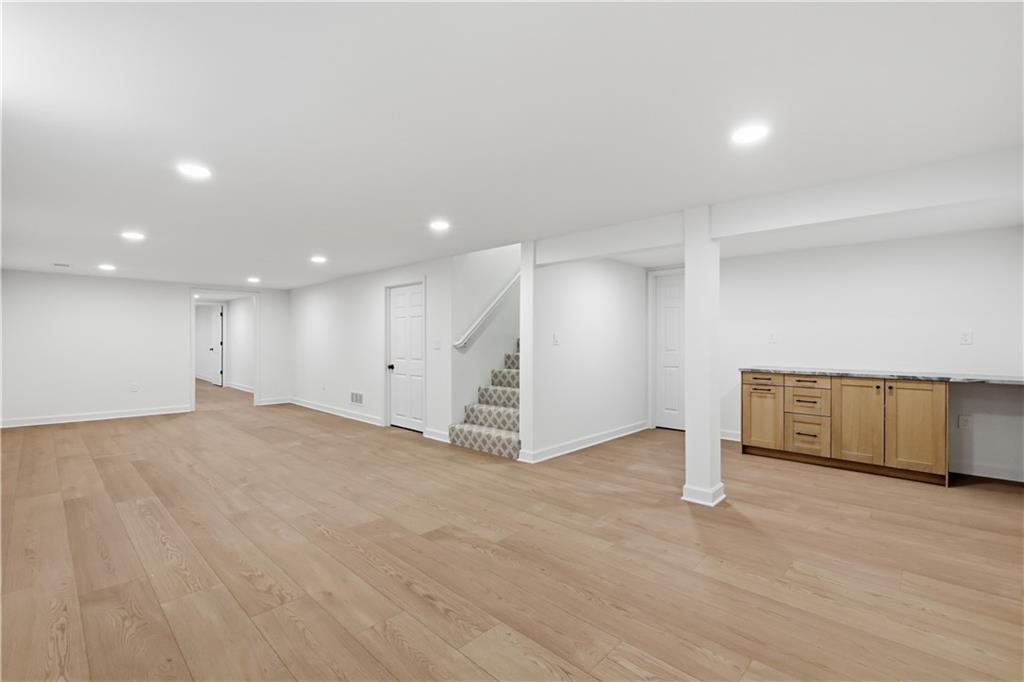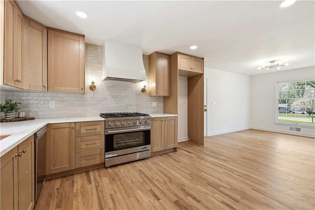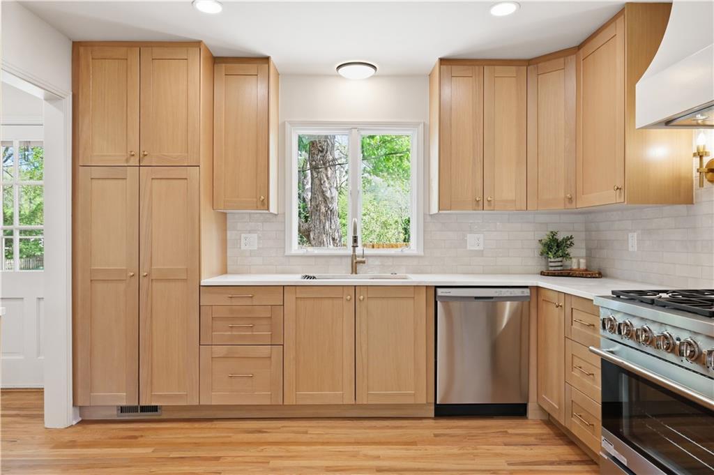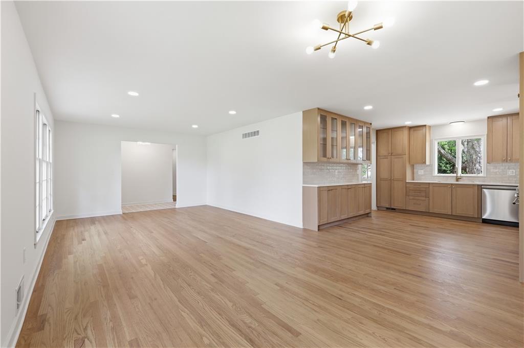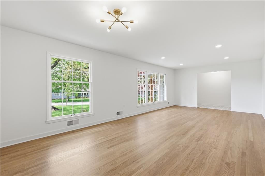 Beautifully updated ranch in the heart of Overland Park, perfectly situated on a spacious corner lot with a fenced yard. This 4-bedroom, 3-bath home offers true main-level living with a thoughtful blend of timeless design and original character. The main floor features an open, connected layout where the living room flows seamlessly into the dining area and kitchen—ideal for both everyday living and entertaining. The fully renovated kitchen features stunning white oak cabinetry, a hidden microwave and trash, and a thoughtfully designed coffee bar with glass upper cabinets to showcase glassware or curated pieces. A second hearth living space creates a cozy retreat, perfect for relaxing evenings. The primary suite is designed with comfort and convenience in mind, featuring a large walk-in shower, double vanity with built-in outlets to keep countertops clutter-free, and a spacious walk-in closet. All closets throughout the home include custom strip lighting for an elevated, luxury feel. Downstairs, you’ll find a fully finished basement offering incredible versatility—complete with a large living area, dry bar ready for a beverage fridge, second laundry room, gym or flex space, fourth bedroom with egress window, and a full bathroom. Every detail in this home has been carefully considered, from the layout to the finishes. All appliances are brand new, including a gas stove. This is one you don’t want to miss—ready for its next owners to love just as much as it has been.