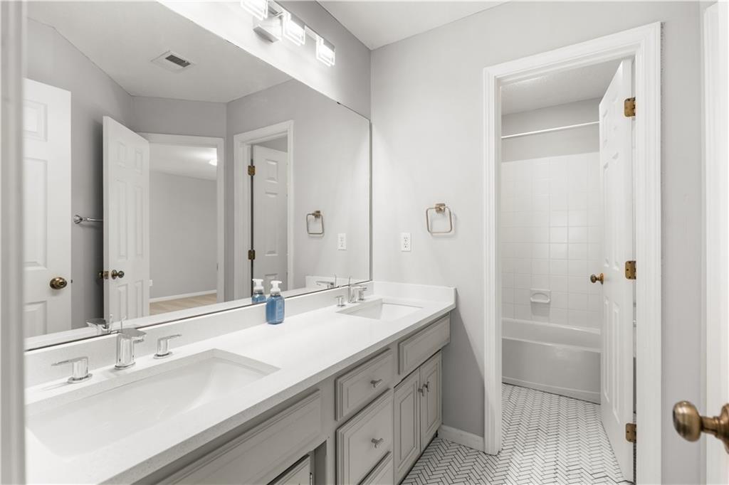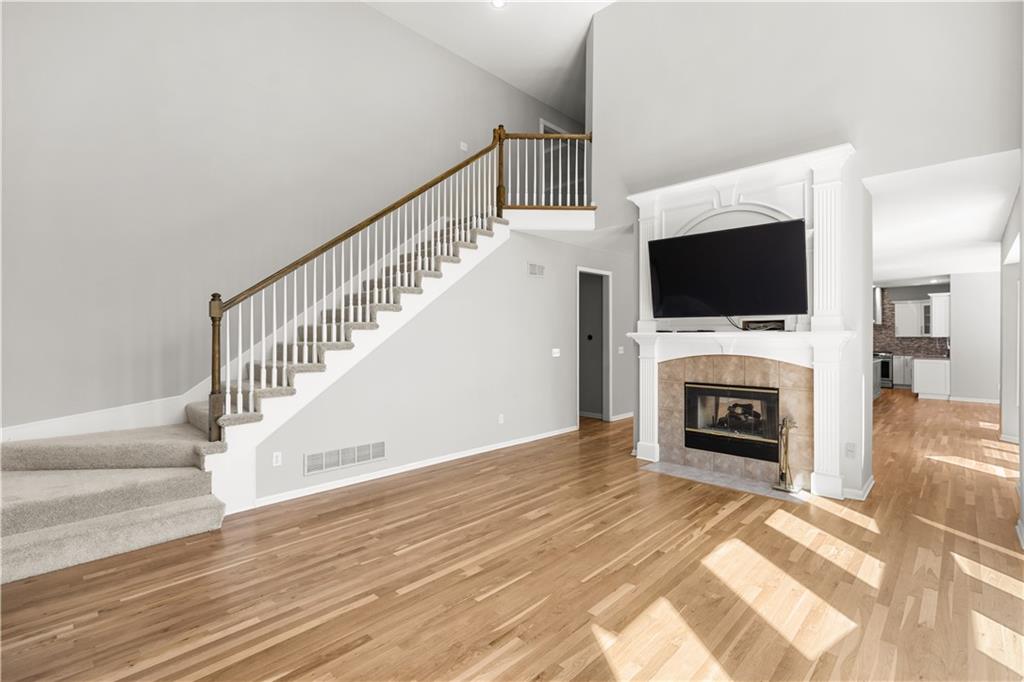 LOCATION! LOCATION! LOCATION! NEW INTERIOR PAINT, NEW CARPETS AND NEWLY FINISHED WOOD FLOORS! Welcome to this beautifully updated home in the highly sought-after Overland Park area, offering the perfect blend of comfort, style, and modern upgrades. Nestled on a quiet street, this spacious residence features an inviting open floor plan designed for both everyday living and effortless entertaining. Step inside to a stunning remodeled kitchen that is truly a cook’s delight—featuring an abundance of cabinetry, quartz countertops, a stylish tile backsplash, stainless steel appliances, and a show-stopping oversized quartz island. The kitchen opens to a generous dining and hearth area, creating the perfect gathering space, and flows seamlessly out to a large patio overlooking a beautiful, level backyard. The main level showcases newly refinished hardwood floors throughout, enhancing the home’s warmth and elegance. A spacious great room impresses with soaring ceilings, a see-through fireplace, and dramatic all-new floor-to-ceiling windows that flood the space with natural light. The inviting two-story entry is flanked by a formal dining room and a versatile den or home office. The main floor also has a full bathroom with shower. Upstairs, the expansive primary suite offers plenty of room for a sitting area, along with a walk-in closet and a beautifully updated en-suite bathroom. Three additional oversized bedrooms provide ample space—one featuring its own private updated bath, while the other two share a convenient Jack-and-Jill updated bathroom. The finished daylight lower level expands your living space with a full bathroom and offers plenty of unfinished area ideal for storage or a workshop. With its thoughtful updates, spacious layout, and prime location near top-rated schools, parks, shopping, and dining, this home truly has it all. Don’t miss your chance to make it yours!