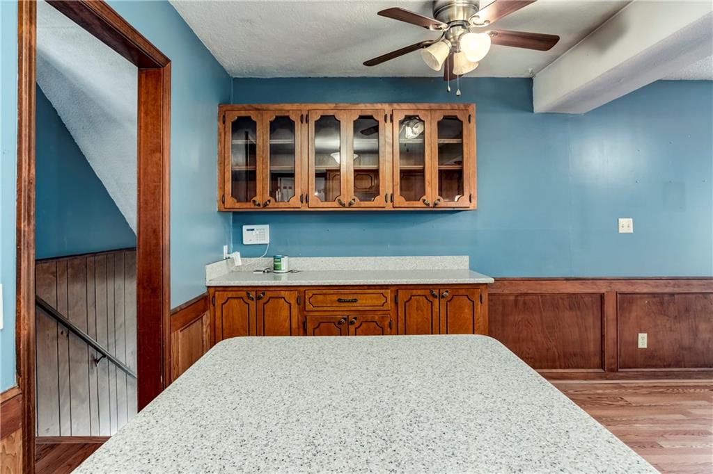 Welcome to this beautifully situated and generously proportioned side-to-side split, offering both comfort and versatility. The home features three distinct living areas, a formal dining room, and a well-appointed kitchen complete with stainless steel appliances and granite countertops. Updated flooring throughout adds a fresh, modern touch, while the roof—just four years old—provides added peace of mind. Set on a spacious, tree-lined lot, this property offers a serene backdrop for everyday living. Enjoy quiet mornings with coffee or unwind in the evening while taking in sunset views from the porch. The oversized garage accommodates up to four vehicles with ease, or provides ample space for a boat, lawn equipment, and additional storage. A sub-basement further enhances the home’s functionality, offering even more room to suit your needs. With its expansive layout and inviting features, this home is move-in ready and waiting for its next owner.