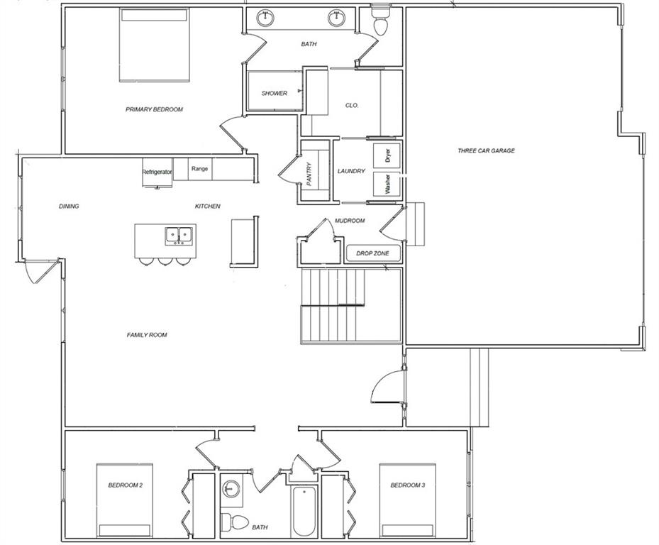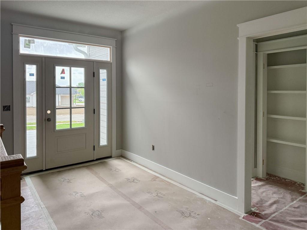 New construction home in Baldwin City featuring main-level living and numerous upgrades throughout! Estimated finish end of May! The open floor plan offers a spacious entry leading to the living room, which flows seamlessly into the eat-in kitchen. The kitchen is appointed with custom wood cabinetry, quartz countertops, a large island, stainless steel appliances, and a custom range hood. The primary suite includes a tiled walk-in shower, separate water closet, and direct access from the walk-in closet to the laundry and mudroom off the garage. The upper level features two additional bedrooms and a full bathroom. The basement is fully framed and ready for you to finish and make it your own! Additional highlights include a 3-car garage with electric vehicle charging outlets and a patio area for outdoor enjoyment. The property backs to wooded Douglas County land. Conveniently located near Baldwin schools, local dining, and highway access.