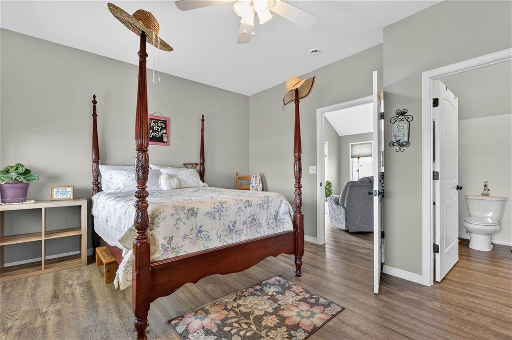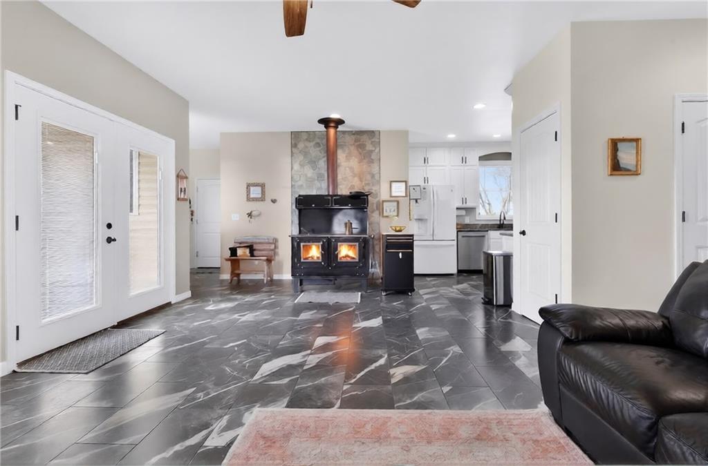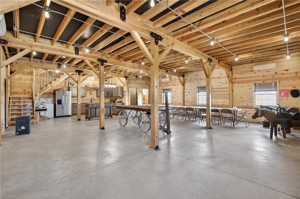 Take advantage of the options available for single or multi family living/business use at this this STUNNING 10 year old home on 7.46 acres, only 20 miles from Stockton lake. The high end finishes found will leave you in awe! The space is designed for family/friends to gather with natural light that flows throughout, providing picturesque views that make you want to stay forever! The cook will love the kitchen w/granite counters, custom cabinetry, walk in pantry, bar seating &/or formal dining space to meet year around needs. Flow out the patio doors onto the covered space for brunches, or relax by the firepit in the evening. Inside, you'll be wowed by the vaulted ceilings found in the living room, along with the inviting window seat/reading nook. This home offers 2 primary bedroom suites. On the main floor a primary BR has the perfect walk in closet, along with an ensuite full bath & the laundry is only steps away. The focal point of the home features a custom walnut staircase, which will call you upstairs to enjoy an office/seating area, or enter to the 2nd primary BR suite that's a relaxing retreat all of it's own w/vaulted ceilings, cozy library, full bath, & 2 separate balcony decks to provide breath taking sunrises & sunsets. Luxury living continues to the basement level with 2 additional bedrooms, a 2nd walk in pantry, a large open 2nd family room w/exercise space, a 1-2 person sauna & a 3rd full bath. Bring your green thumb & love the 30x54 greenhouse with auto fans, gas line, electric & water, along w/a fenced outdoor garden w/young fruit trees & bushes. A 2+ person jetted jacuzzi tub in the attached garage is a plus for relaxation after a long day. An addtl 2709 sq ft barn/venue on the property offers a 2nd living option &/or endless business opportunity. Built with Ozark wood from the Amish mill, the inside & out will leave you breathless featuring open beamed ceilings, full kitchen, 1-2 bedrooms, two 1/2 baths & space galore! Seller is willing to divide.