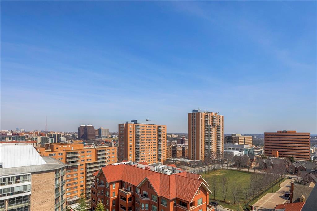 Bring your designers and decorators to this beautiful 10th floor canvas. Stunning 180 degree views overlooking the Plaza, Loose Park and downtown KC. This 3 bedroom Kirkwood condominium offers 2359 square feet, an open kitchen, family room, dining room and living room. One of the larger top floor condo units. It also features an 18' x 14' balcony with north and west views of the city. Kirkwood offers an amenities package with pool, fitness center, conference rooms, community room with kitchen and beautiful gardens outside. 2 inside parking spaces. A storage room. 24/7 monitored front desk.