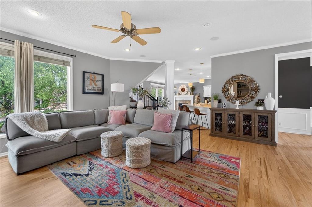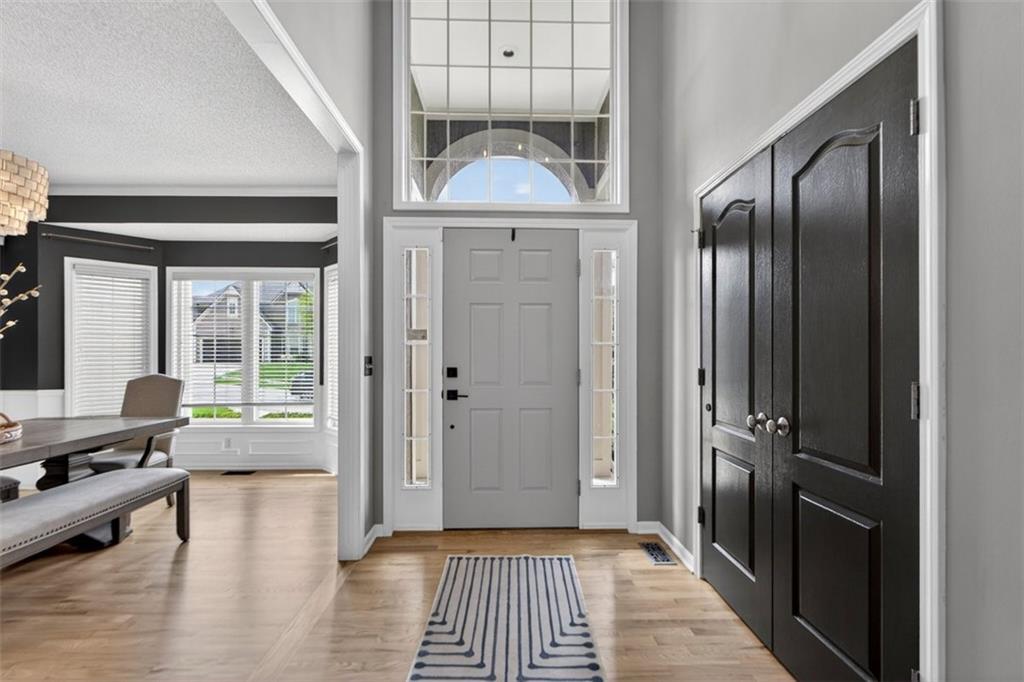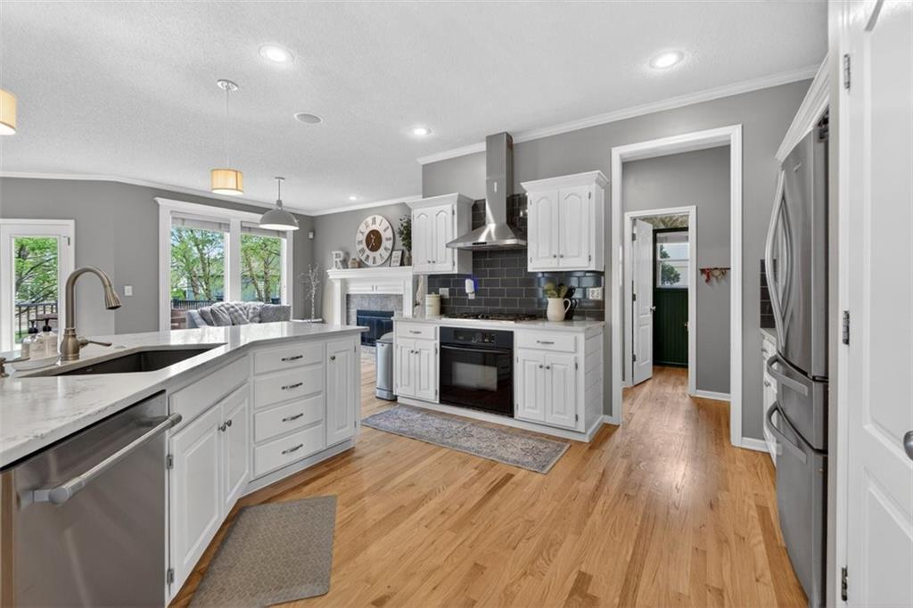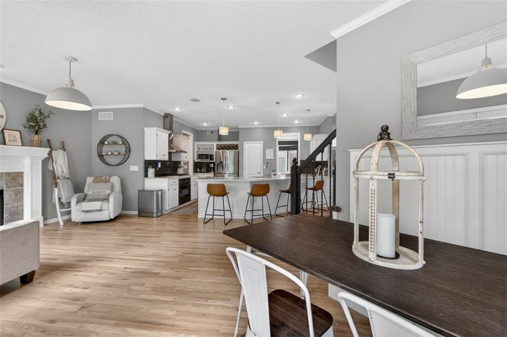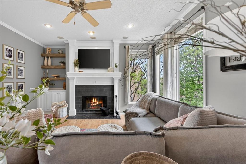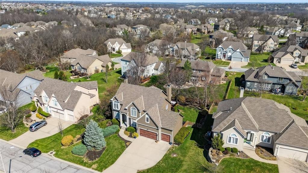 NEWLY refinished hardwoods throughout the entire main level! Welcome to Winterset Park! Just minutes from downtown Lee’s Summit with quick, easy highway access. This move-in ready home offers over 4,500 square feet, 5 bedrooms, 3 full baths, and 2 half baths, all thoughtfully updated with a clean, high-end feel. The exterior has been refreshed with all-new paint and brand-new garage doors, creating strong curb appeal from the start. Inside, you’ll find fresh interior paint in select areas along with custom upgrades that elevate the space. The main level features a remodeled living area with custom built-in shelving and cabinetry, paired with an added breakfast nook that brings warmth and functionality. The layout flows naturally with open gathering spaces and defined areas that feel intentional and comfortable. The home carries warmth and character throughout, offering a lived-in charm that feels inviting. Major system updates add peace of mind, including a brand-new HVAC system and dual hot water heaters. Upstairs, the bedrooms feature brand new carpet, while portions of the upper level have been freshly painted. The primary suite stands apart with hardwood floors, a private sitting area, a large spa-like bathroom with tile flooring, and an absolutely massive walk-in closet. The fully finished walkout basement adds versatility, complete with a bedroom, a bar area perfect for entertaining, and plenty of storage space. Whether hosting, relaxing, or creating a separate living setup, this lower level adapts. Step outside to a TimberTech deck overlooking mature trees and landscaping, with a concrete patio below for additional outdoor living. The setting feels established, private, and ready to enjoy. Easy highway access and a short drive to vibrant downtown Lee's Summit. Just a block from the neighborhood pool, playground, and tennis courts, this home brings together size, updates, location, and lifestyle in one complete package.