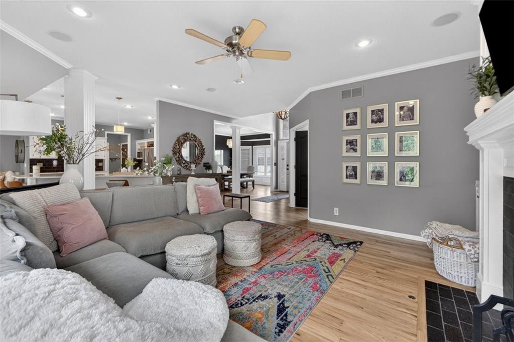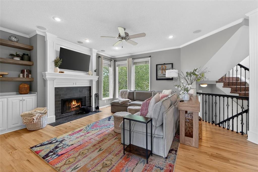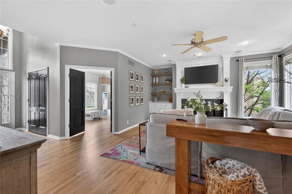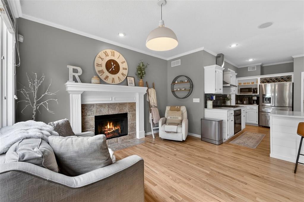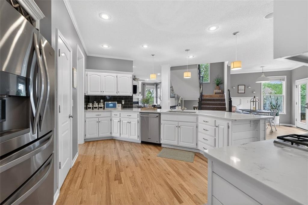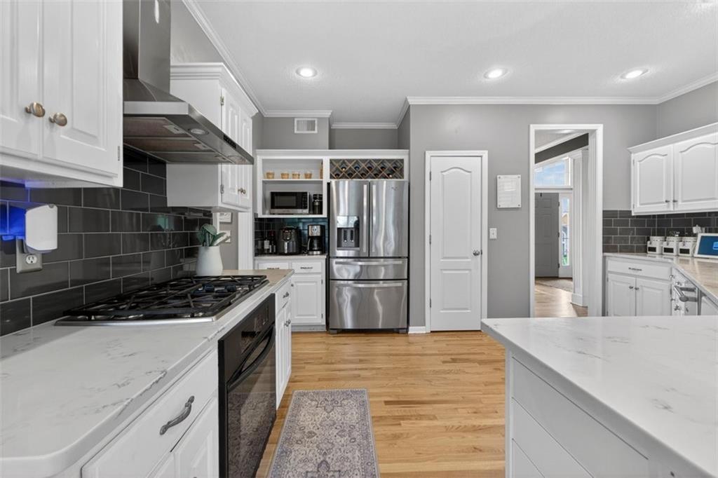 NEWLY refinished hardwoods throughout the entire main level! Welcome to Winterset Park! Just minutes from downtown Lee’s Summit with quick, easy highway access. This move-in ready home offers over 4,500 square feet, 5 bedrooms, 3 full baths, and 2 half baths, all thoughtfully updated with a clean, high-end feel. The exterior has been refreshed with all-new paint and brand-new garage doors, creating strong curb appeal from the start. Inside, you’ll find fresh interior paint in select areas along with custom upgrades that elevate the space. The main level features a remodeled living area with custom built-in shelving and cabinetry, paired with an added breakfast nook that brings warmth and functionality. The layout flows naturally with open gathering spaces and defined areas that feel intentional and comfortable. The home carries warmth and character throughout, offering a lived-in charm that feels inviting. Major system updates add peace of mind, including a brand-new HVAC system and dual hot water heaters. Upstairs, the bedrooms feature brand new carpet, while portions of the upper level have been freshly painted. The primary suite stands apart with hardwood floors, a private sitting area, a large spa-like bathroom with tile flooring, and an absolutely massive walk-in closet. The fully finished walkout basement adds versatility, complete with a bedroom, a bar area perfect for entertaining, and plenty of storage space. Whether hosting, relaxing, or creating a separate living setup, this lower level adapts. Step outside to a TimberTech deck overlooking mature trees and landscaping, with a concrete patio below for additional outdoor living. The setting feels established, private, and ready to enjoy. Easy highway access and a short drive to vibrant downtown Lee's Summit. Just a block from the neighborhood pool, playground, and tennis courts, this home brings together size, updates, location, and lifestyle in one complete package.