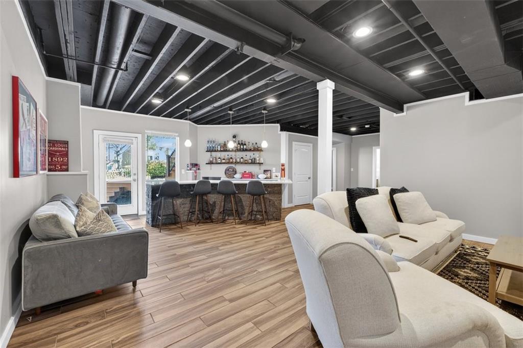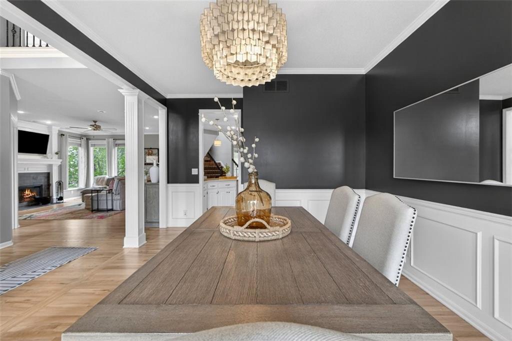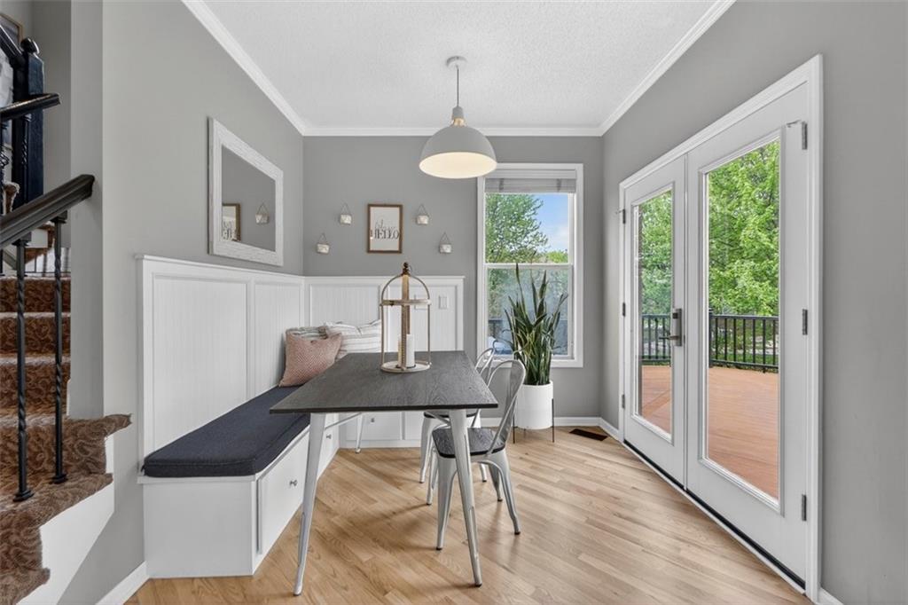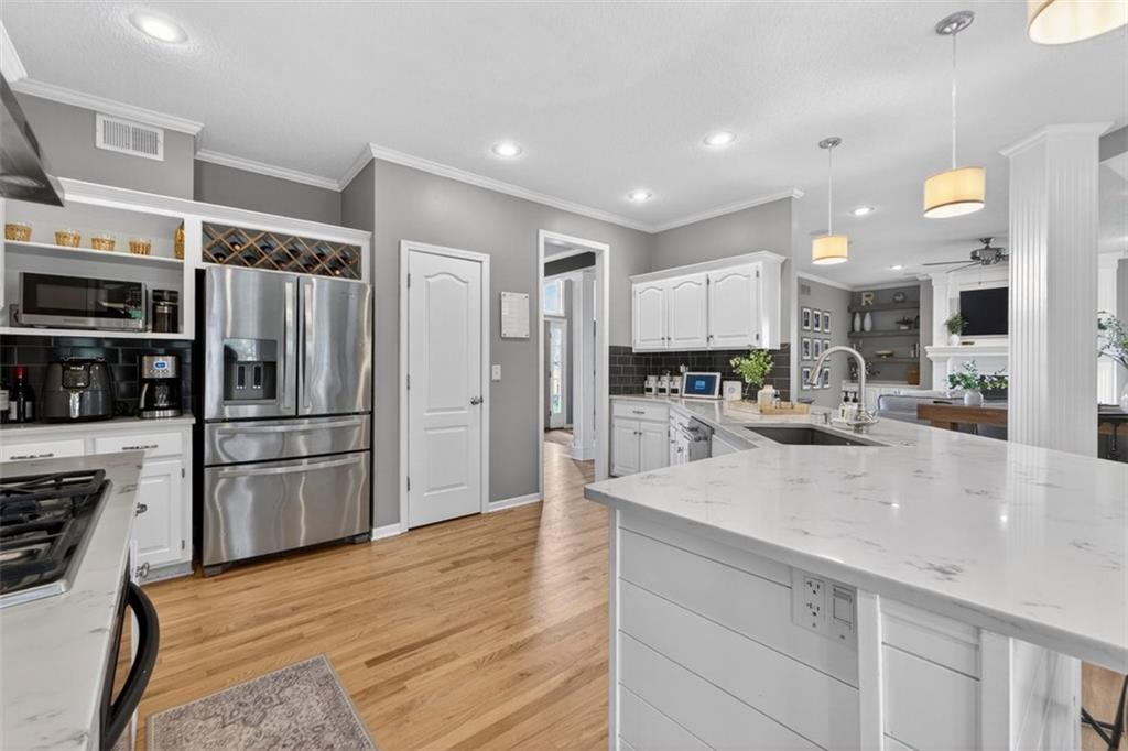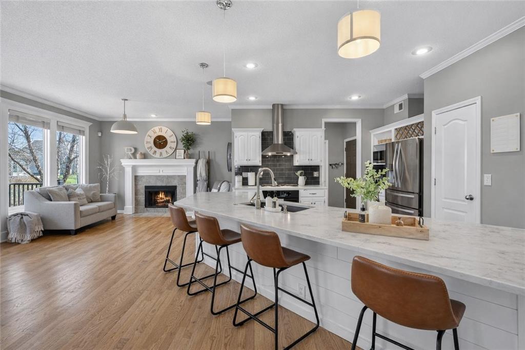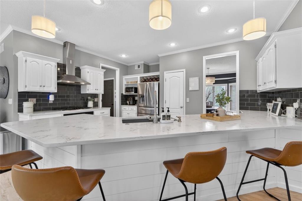 NEWLY refinished hardwoods throughout the entire main level! Welcome to Winterset Park! Just minutes from downtown Lee’s Summit with quick, easy highway access. This move-in ready home offers over 4,500 square feet, 5 bedrooms, 3 full baths, and 2 half baths, all thoughtfully updated with a clean, high-end feel. The exterior has been refreshed with all-new paint and brand-new garage doors, creating strong curb appeal from the start. Inside, you’ll find fresh interior paint in select areas along with custom upgrades that elevate the space. The main level features a remodeled living area with custom built-in shelving and cabinetry, paired with an added breakfast nook that brings warmth and functionality. The layout flows naturally with open gathering spaces and defined areas that feel intentional and comfortable. The home carries warmth and character throughout, offering a lived-in charm that feels inviting. Major system updates add peace of mind, including a brand-new HVAC system and dual hot water heaters. Upstairs, the bedrooms feature brand new carpet, while portions of the upper level have been freshly painted. The primary suite stands apart with hardwood floors, a private sitting area, a large spa-like bathroom with tile flooring, and an absolutely massive walk-in closet. The fully finished walkout basement adds versatility, complete with a bedroom, a bar area perfect for entertaining, and plenty of storage space. Whether hosting, relaxing, or creating a separate living setup, this lower level adapts. Step outside to a TimberTech deck overlooking mature trees and landscaping, with a concrete patio below for additional outdoor living. The setting feels established, private, and ready to enjoy. Easy highway access and a short drive to vibrant downtown Lee's Summit. Just a block from the neighborhood pool, playground, and tennis courts, this home brings together size, updates, location, and lifestyle in one complete package.